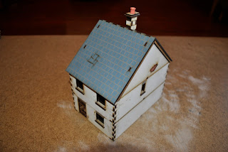 That is about it without making this a small novel about putting something togther that comes with instructions. Next up I'll be picking away at the six remaining buildings I have while I wait for my foam cutter to resume my Fort William Henry efforts. I'll say that it takes about 1.5-2 hours per house when you are paying attention.