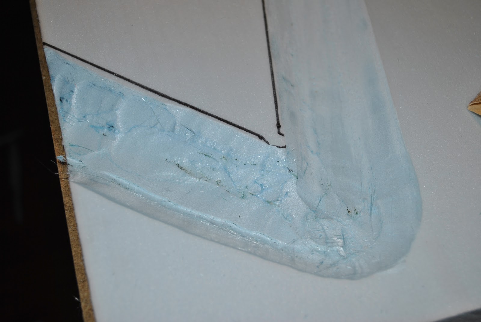 Showing the "first cuts" with the foam cutter ... it takes a few runs to get the trench deep and wide enough.