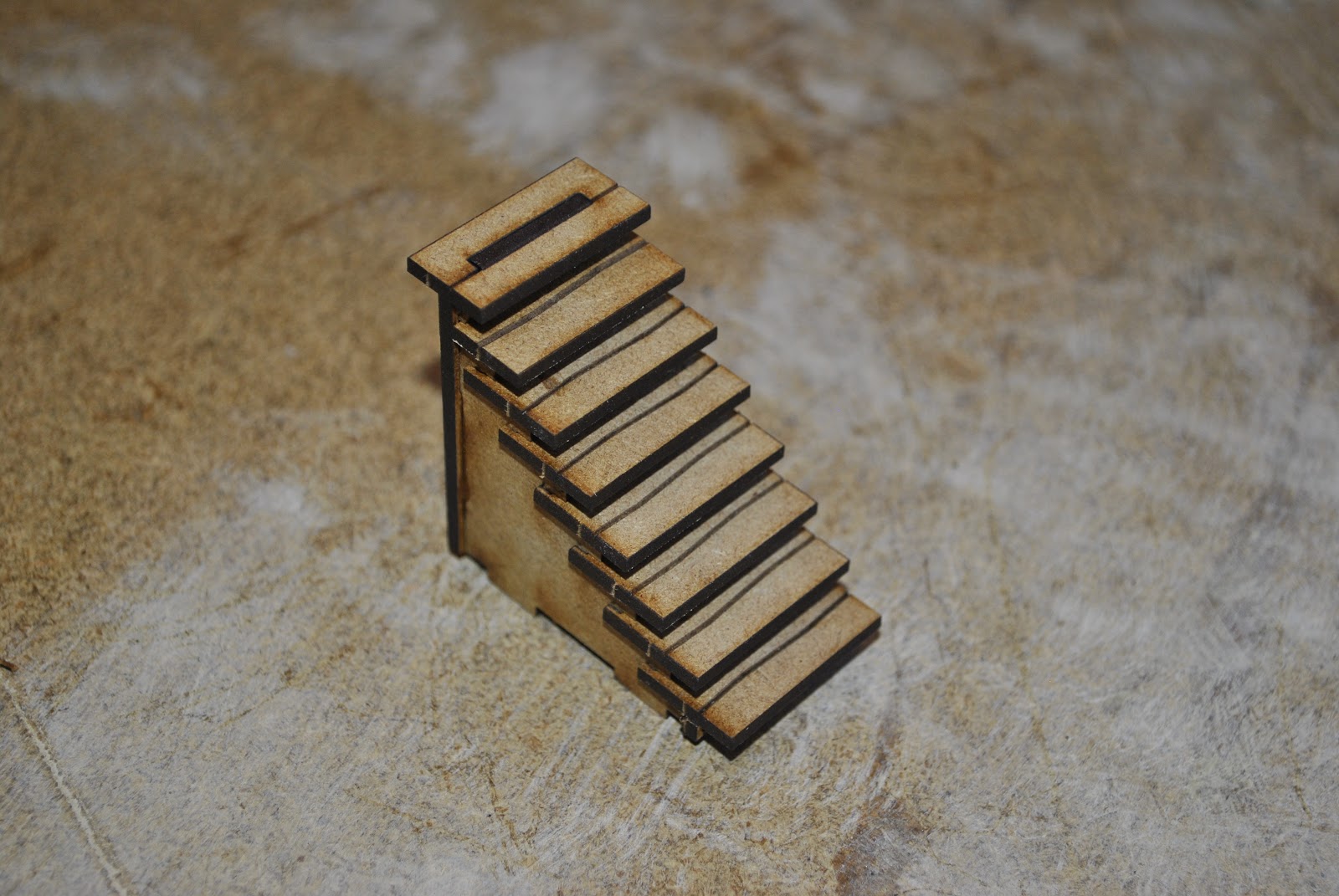 You start with the staircase. It goes together quickly which is very nice. My forthcoming boneheaded move involved the top stair - which you can see at the top of the above photo. That top stair actually sticks up into the floor of the second story.