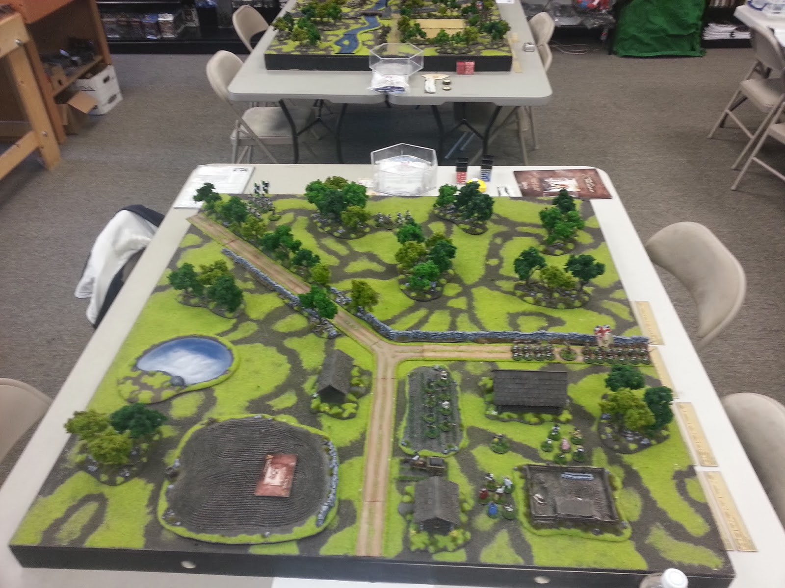 I recently ran a demo day for Muskets & Tomahawks at the local game store by my place - Game Kastle (Fremont). Roy Scaife and I ran a couple of games in parallel with some new players who had never played the rules before. Good news, they bought miniatures and the rules right after the games wrapped up :-)