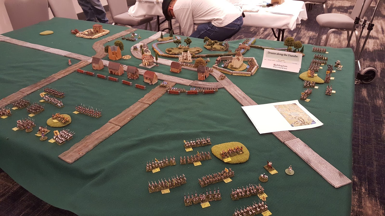 This was also the first game where I got to use my newer Crescent Root Studio buildings in a significant way. They buildings can work for modern --- although we need to add a lot more "modern" look and feel to the tablestop, this is a great start. We used black tar roofing shingles (the underside) for paved roads.