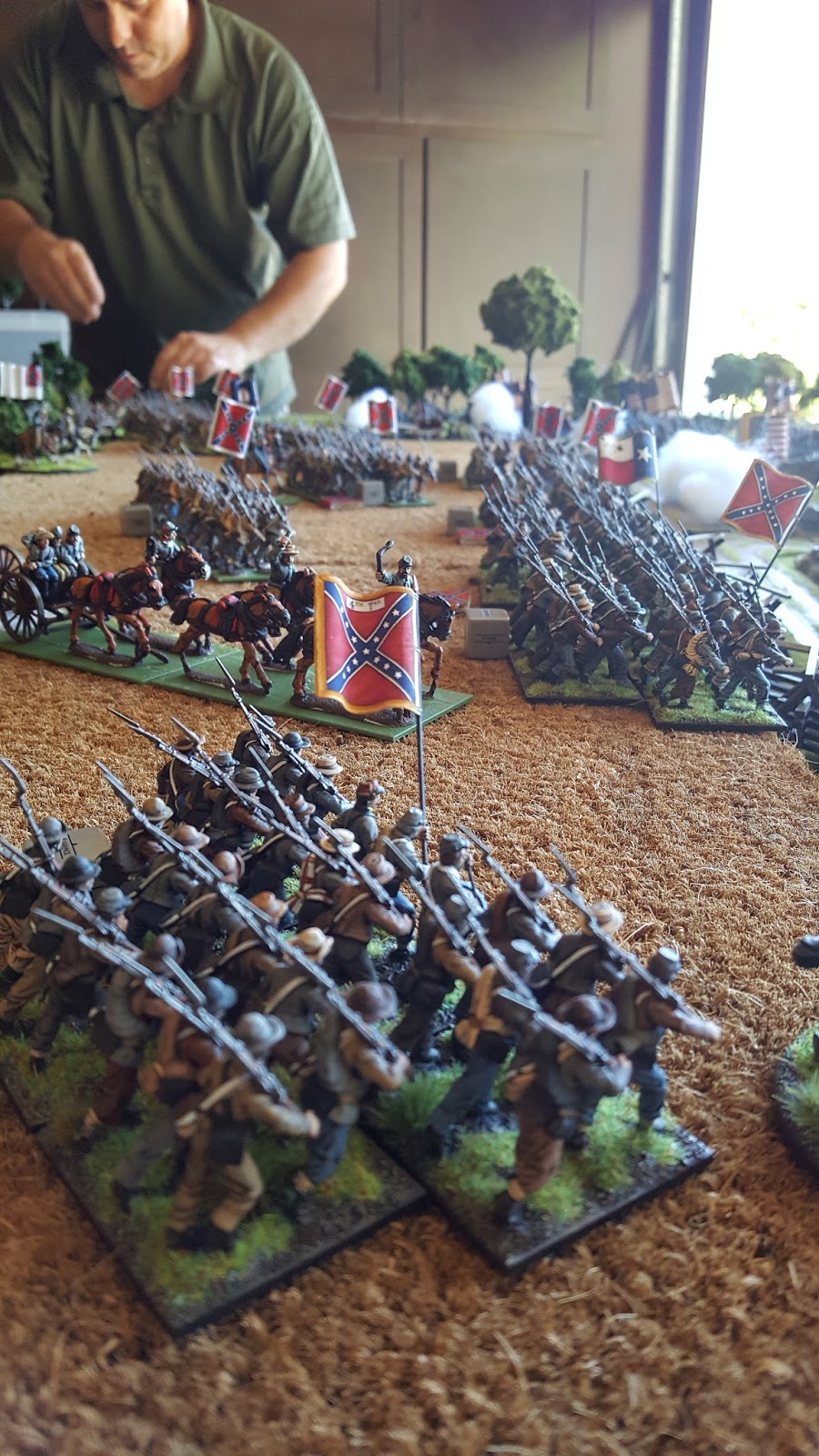 For Virginia - The normal rules for broken brigades do not apply to the Confederate brigades. Instead, a Confederate infantry brigade is only broken when all units in the brigade at either broken or shaken. This represents the amazing determination shown by Pickett's division in driving on to the Union position.