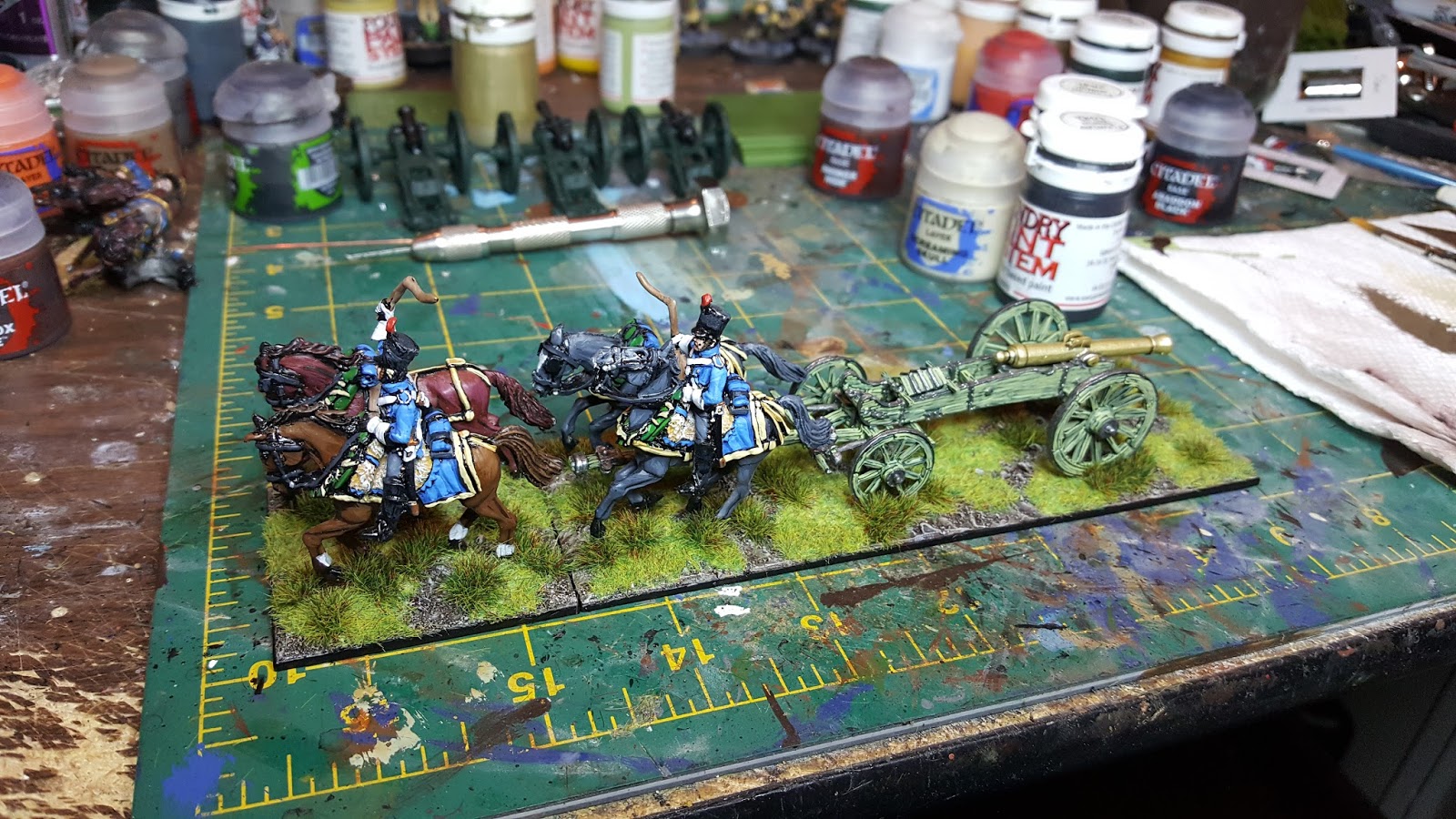 As you can see a lot is in progress ... but an enormous amount of progress has been made ... hence why I've not been blogging. Most of the last week I've spent painting artillery. I've painted 22 guns/limbers just in the last week! I was going to do a post about "Gunvember" to track my progress but honestly I just got into the grove and didn't want to mess it up so just kept on painting. Very happy with the progress. I have another 9 guns and 2 limbers to paint and hope to finish that over the next week or so. You can see some of the completed units below ...