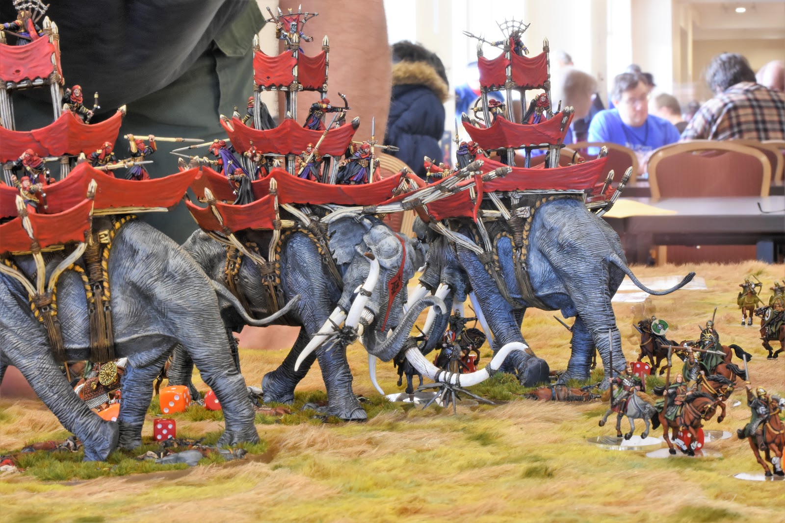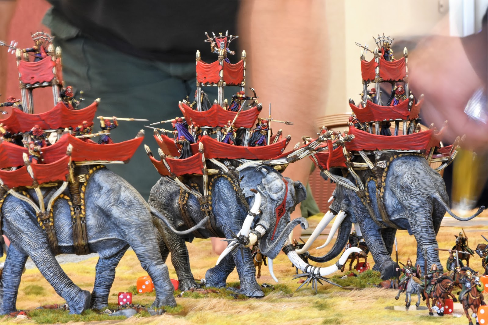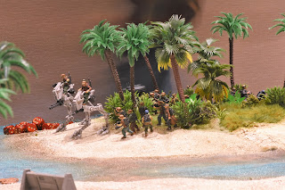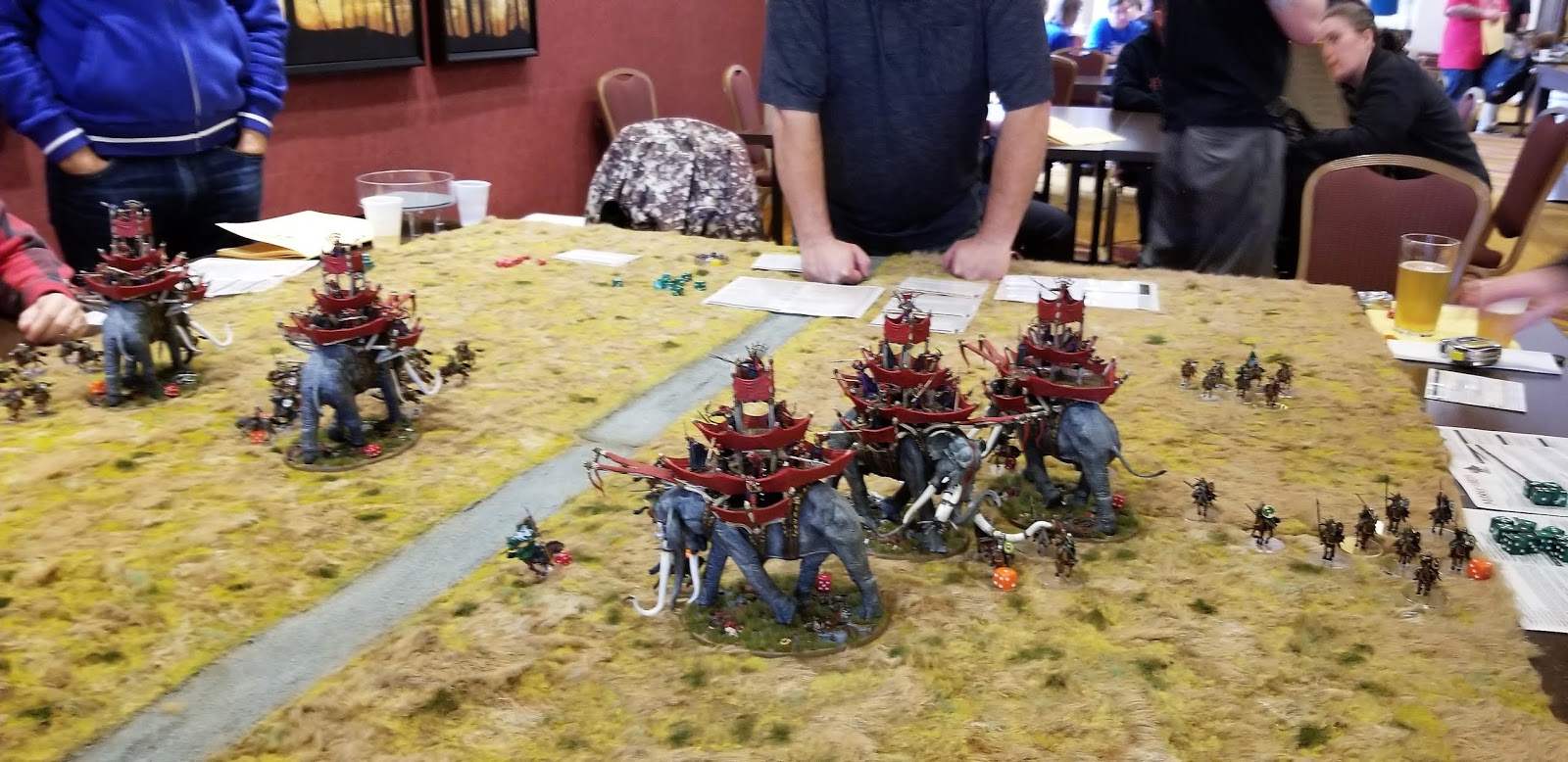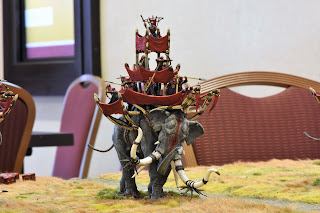 Falling: While the staircase used is only 8" at it's highest point for practical game purposes, it only abstractly represents the staircases. The "real" (right, it is a fantasy setting, har har) staircases are much higher. Any model that falls from the edge of the staircases from 5" or higher automatically becomes a casualty. From 4" and lower, models suffer falling damage as normal.