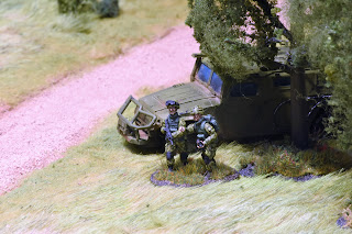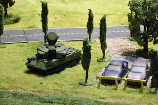 It was great to break out the modern toys since it has been a while. This was also the first time I used a full sized fur mat for a modern game (using paved roads over the mat). Worked out ok I think.