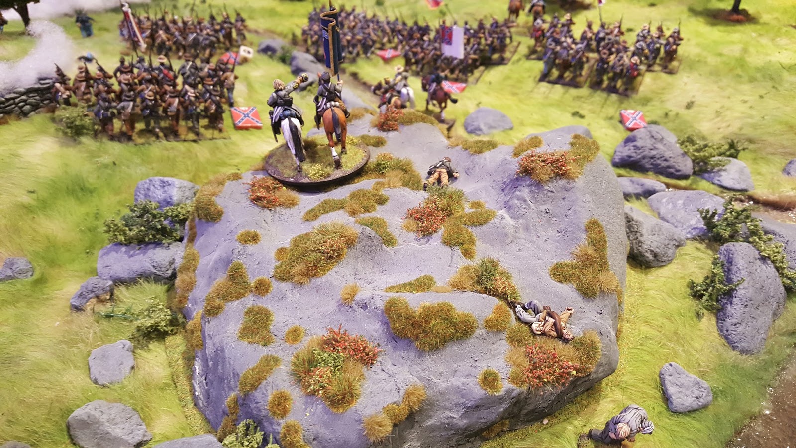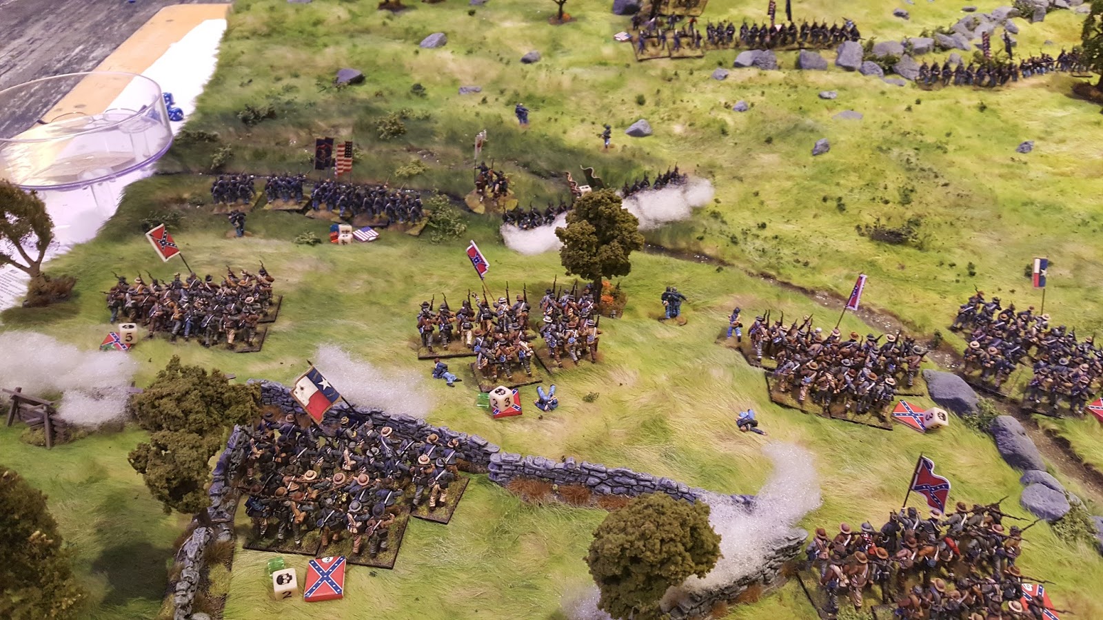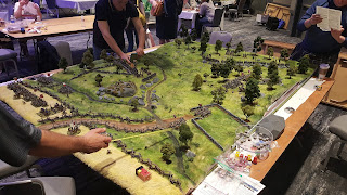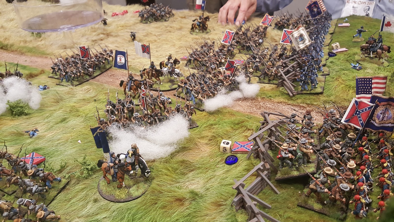 KublaCon 2017 has come and gone.  The group put together one hell of a lineup of games.  I signed up to run all three of my Gettysburg games (McPherson's Ridge, Little Round Top and Pickett's Charge), Roy Scaife ran his Napoleonic game for Roncevaux Pass, John Lantz ran his Radio Zambia modern game, Dan Kerrick ran his Shevardino Redoubt Napoleonic game, and Matt Hilzendrager ran his modern game using Spectre Ops for a small unit action in Afghanistan.