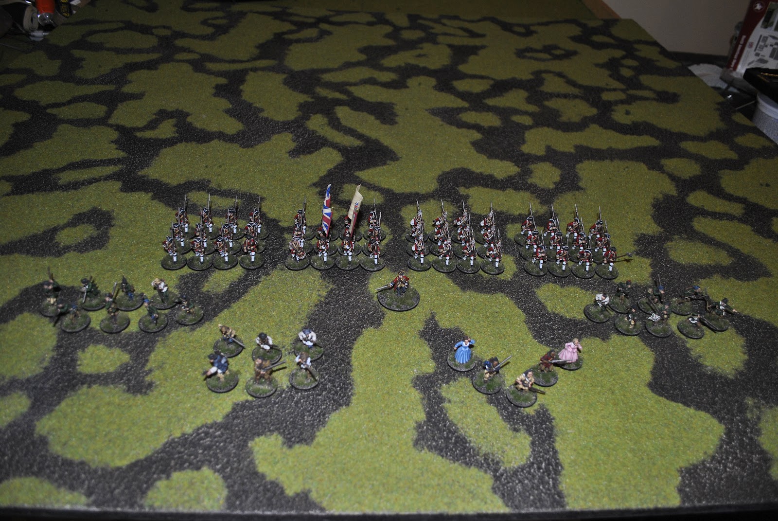 I've wrapped up the last of the basing for the British which included two units of regulars and the "Last of the Mohicans" characters. You can see the additional units below as well as some high level pictures of the British force as a whole that is based around the 48th regiment of foot (Webb).
