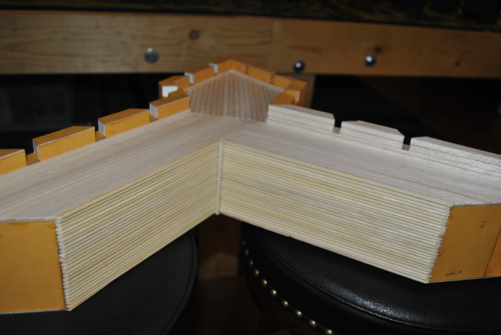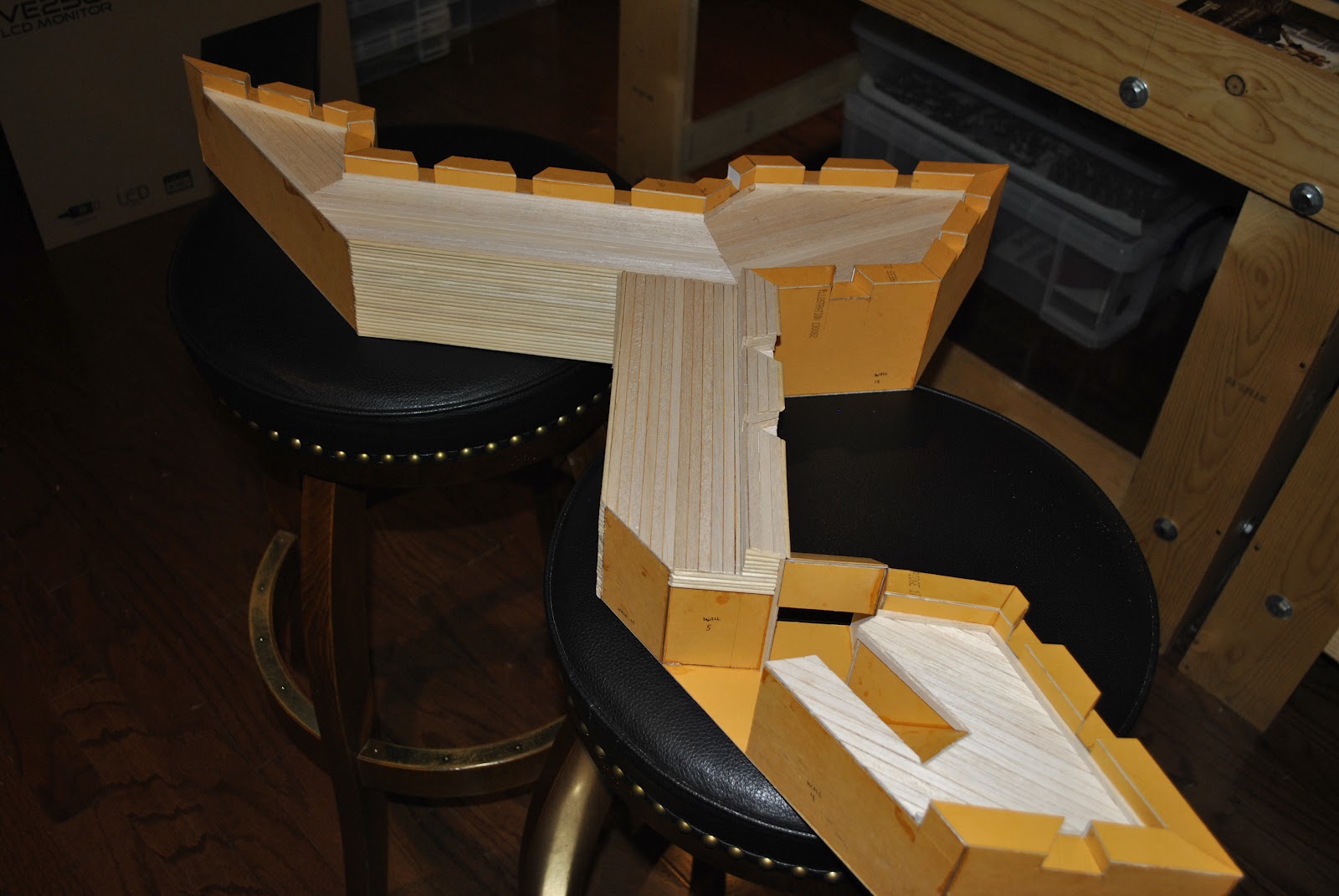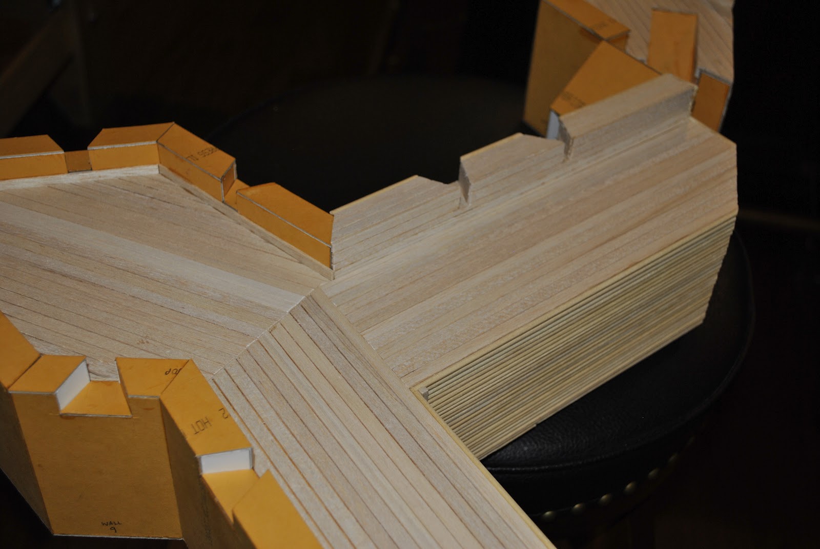 I've been making steady progress with the "wooding" of the fort. The floor is complete along with the inside log walls. I've started the gun ports and will work around those until complete. Then it's the front of the fort walls and the gate house.