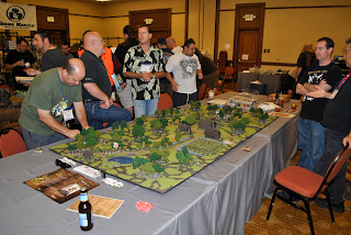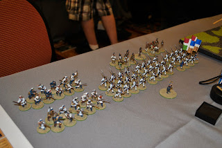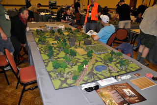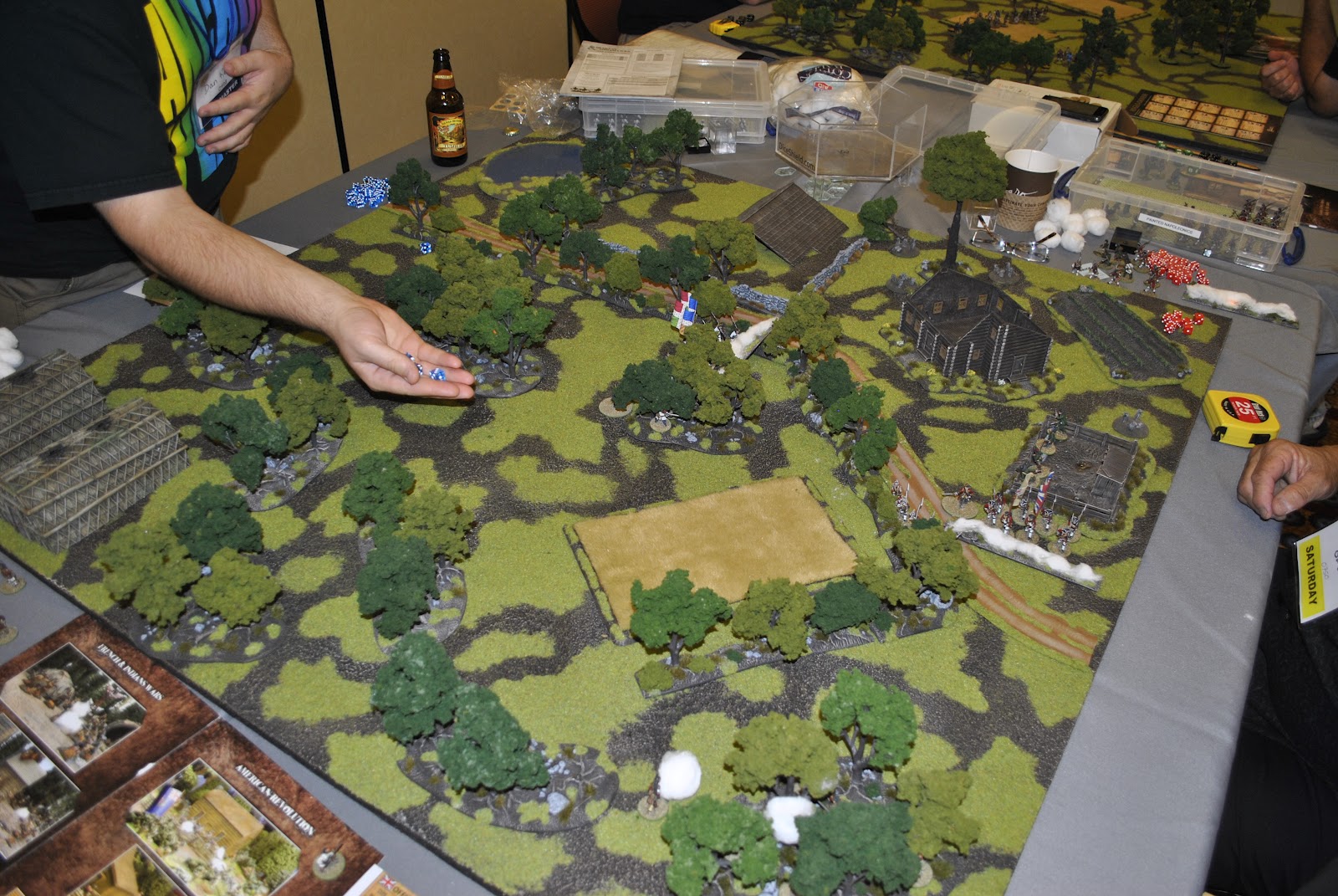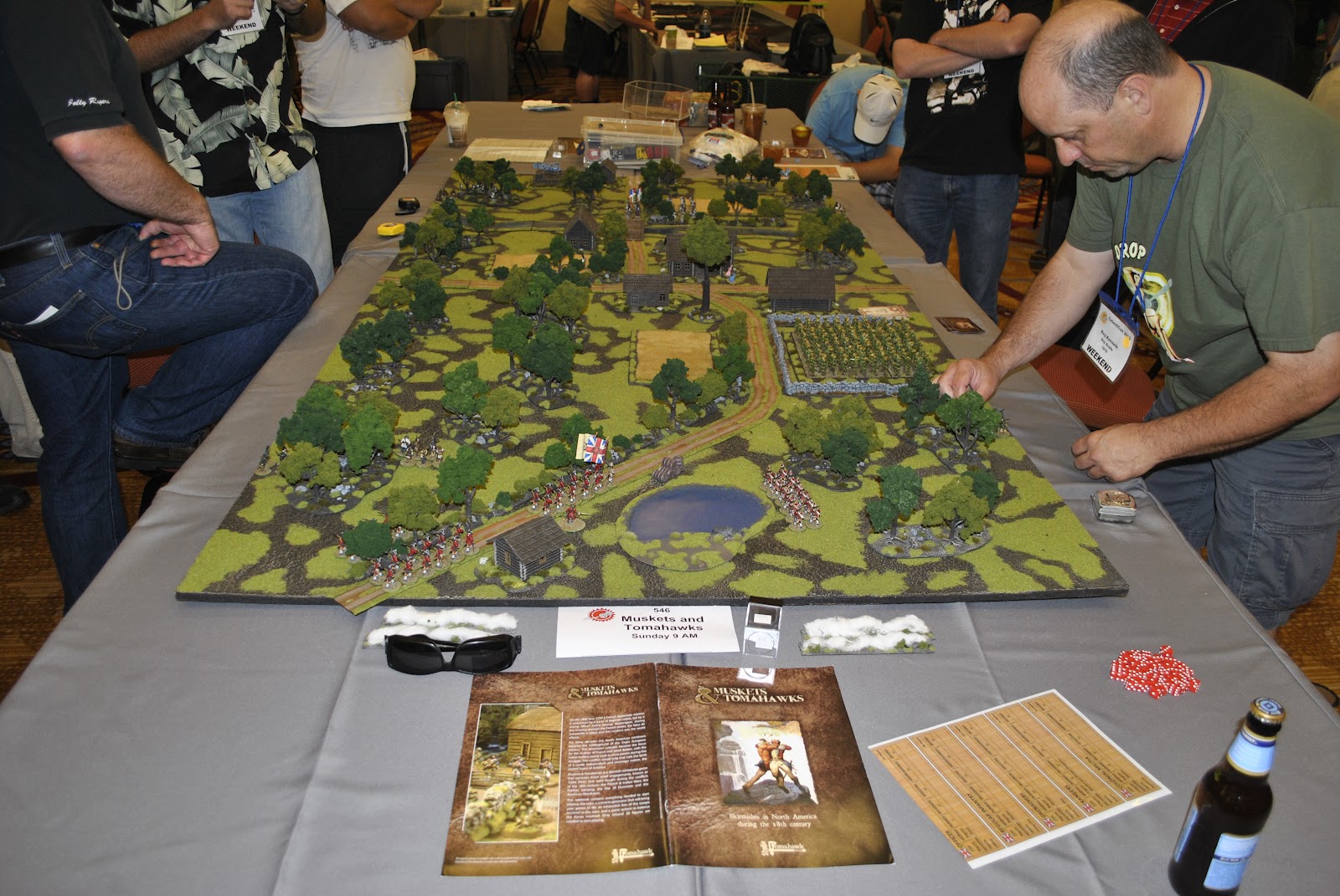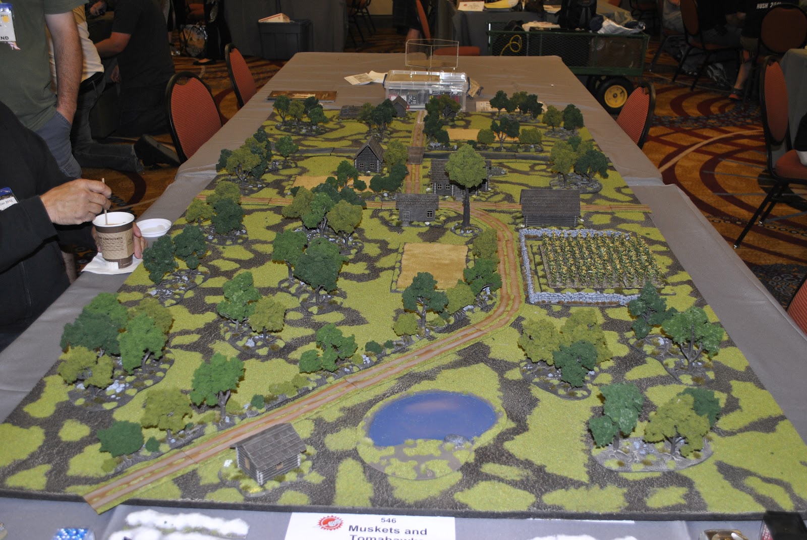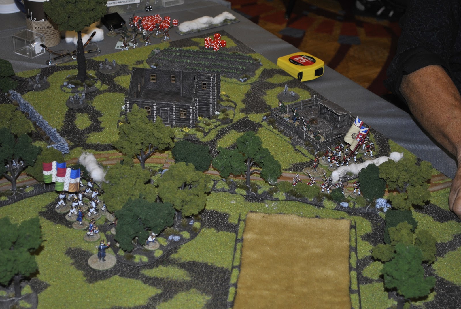 I've spent the last two months creating all new terrain to use for my French and Indian stuff and this convention was the objective --- my first six games of Muskets and Tomahawks (most of which were 600pt games - go big or stay home) ... and I have to say that the rules are just outstanding. Each game was unique and a ton of fun. I still need to finish painting the bases and properly paint/attach the banner tops (was down to the wire on this one) ... but enough of that ... let's see some pictures!