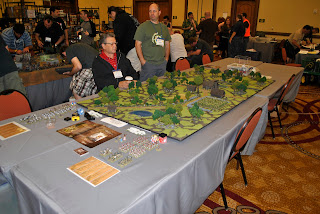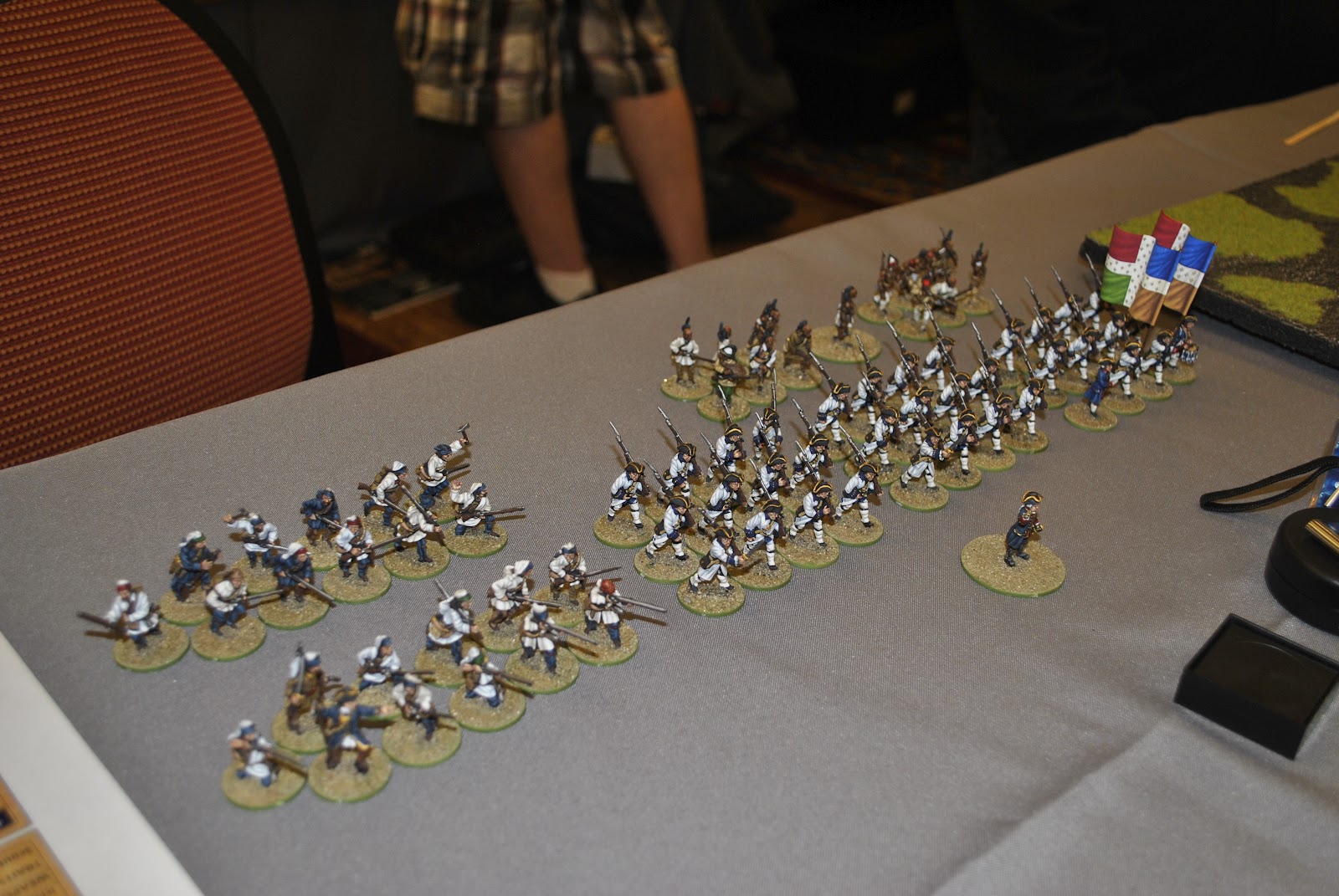 We played a mix of scenarios. The French won a game in which they had to slaughter all the civilians in order to discourage future settlement of the area ... in which they succeeded ultimately --- but it was a close run thing. It came down to a random event in which the last remaining civilian ran away from her protectors and got a face full a lead as a result. That's it for now --- more to come while I recover from a long weekend that was full of gaming at CelestiCon 2012.