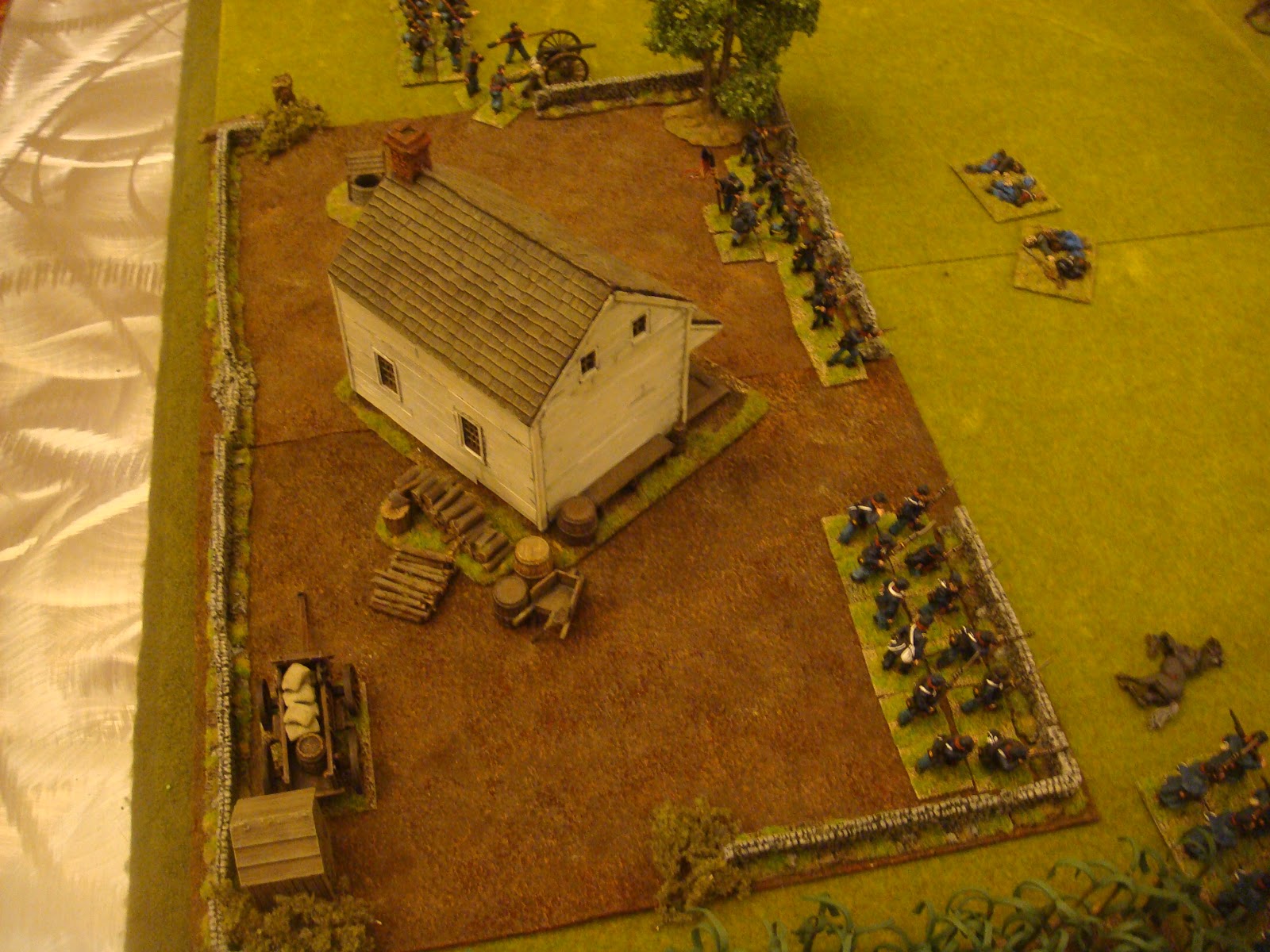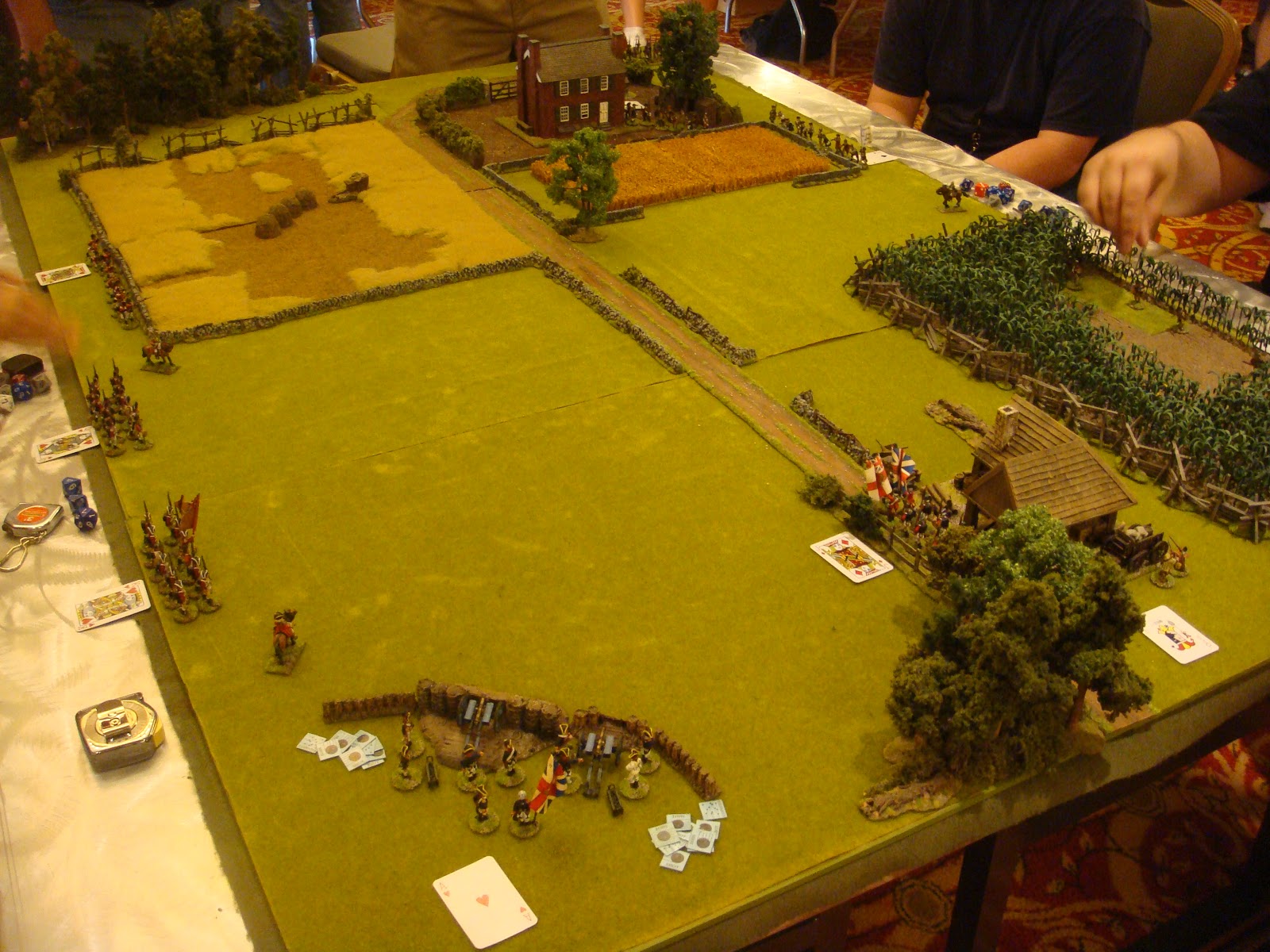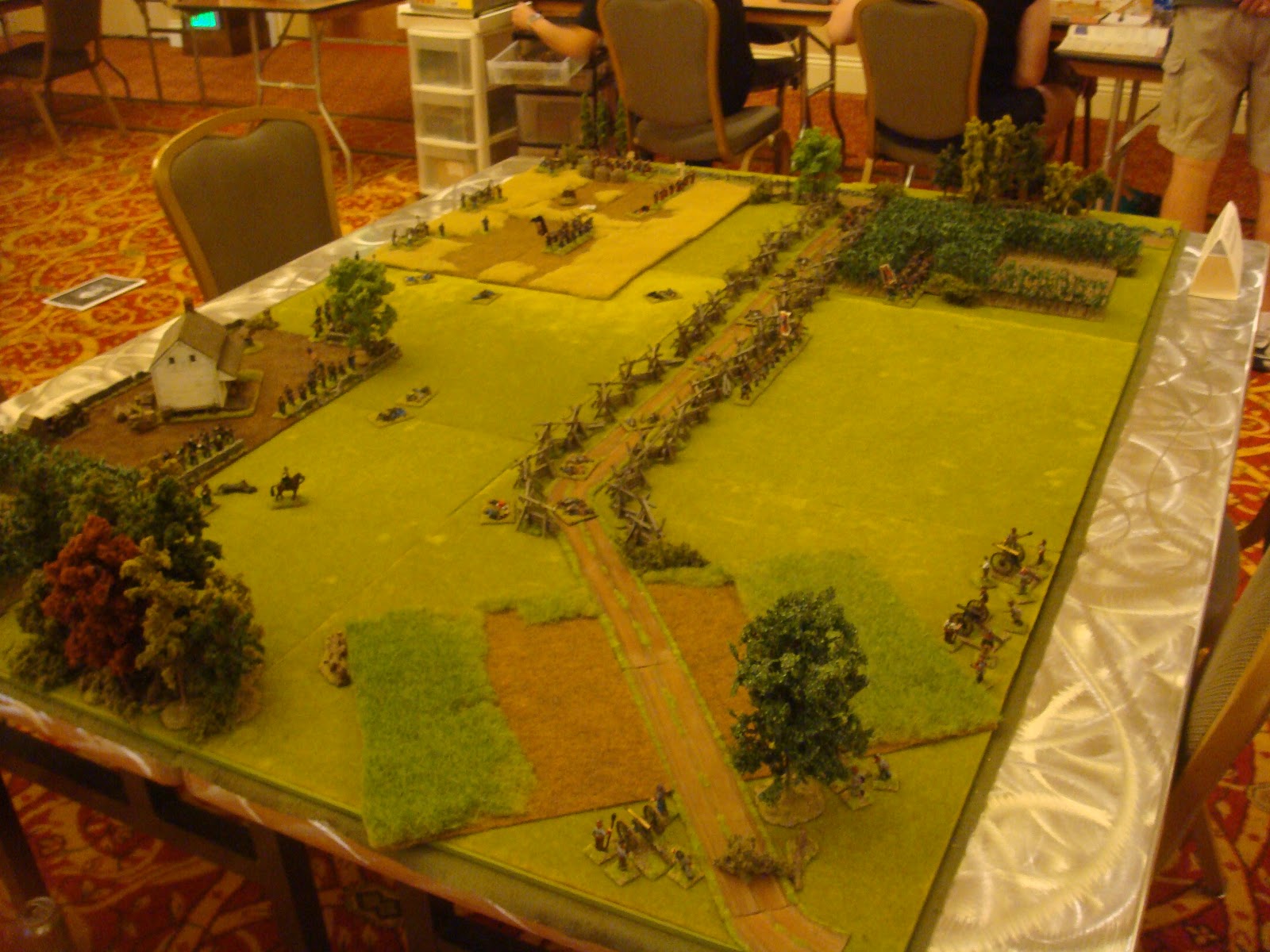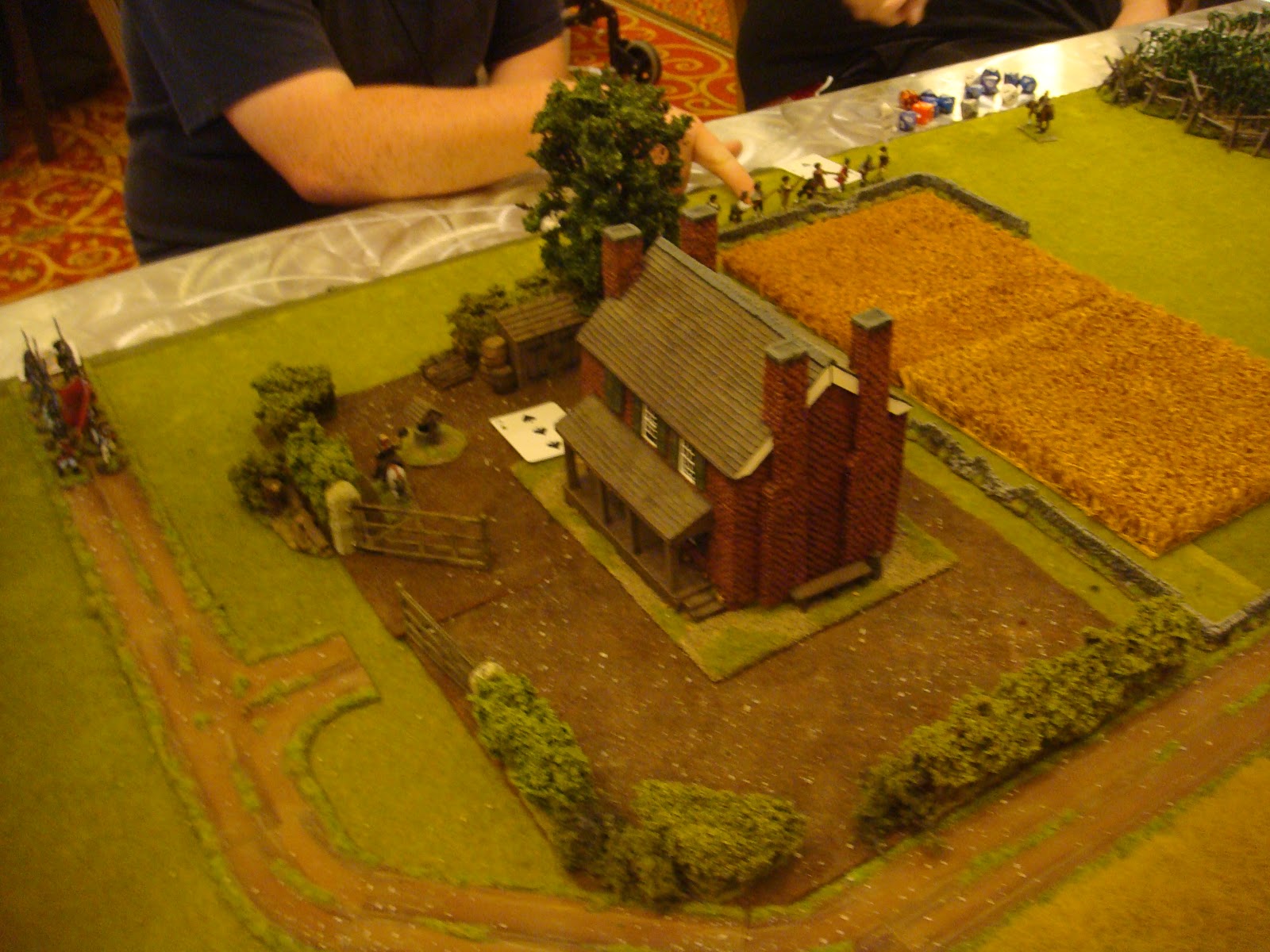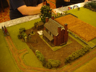 I have been attending local conventions in the San Francisco bay area for some time now and I've managed to collect some great pictures of various games. One of the best that I've seen in terms of terrain and figure quality has been run by a local guy who has run ACW and AWI "Brother Against Brother" wargames for a long time. I always admired his terrain setup - all the little details he puts out - very inspiring. I figured I would share my pictures of his games through the years for anyone looking for terrain inspiration.
