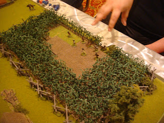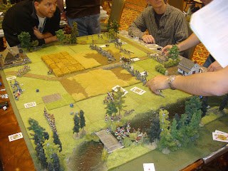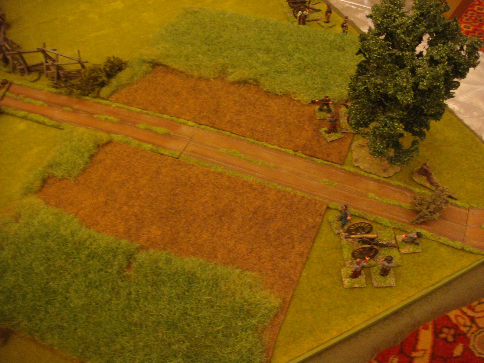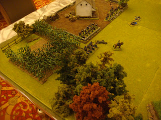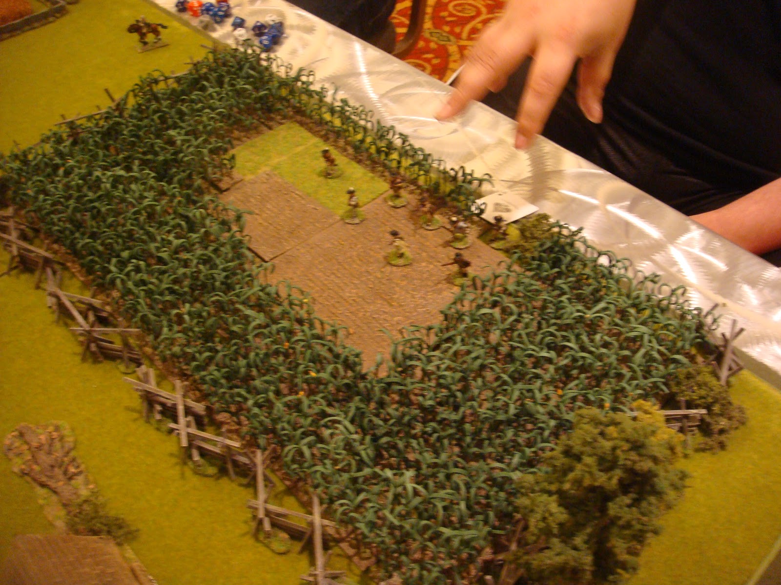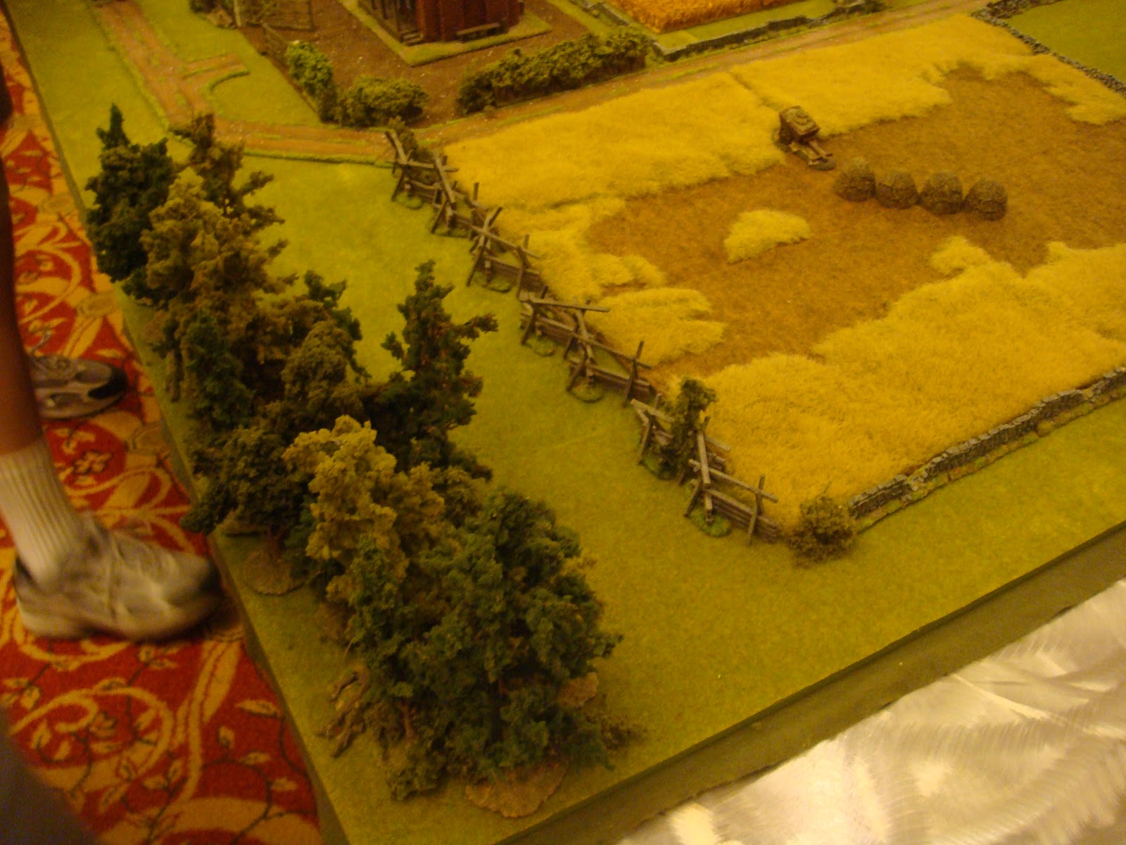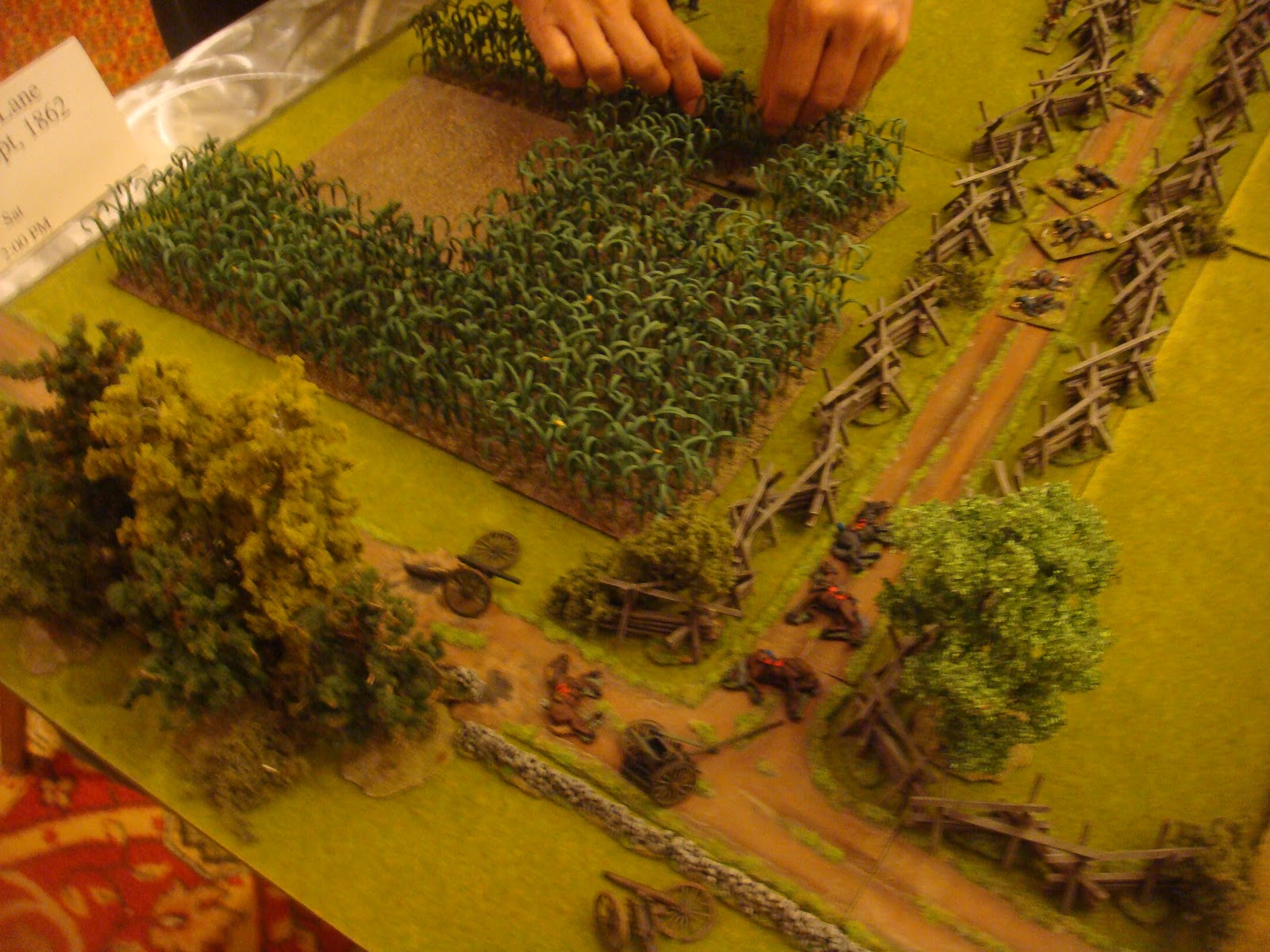 I have been attending local conventions in the San Francisco bay area for some time now and I've managed to collect some great pictures of various games. One of the best that I've seen in terms of terrain and figure quality has been run by a local guy who has run ACW and AWI "Brother Against Brother" wargames for a long time. I always admired his terrain setup - all the little details he puts out - very inspiring. I figured I would share my pictures of his games through the years for anyone looking for terrain inspiration.