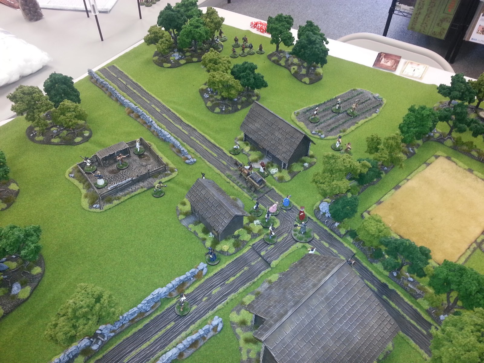 In the end however, all the settlers were killed. A fatal flaw on my behalf was not deploying one of the regular units out into the wheat fields to provide protection for the fleeing townsfolk - I got all jammed up on the road and ended up fighting over the large house - which I eventually lite on fire.
