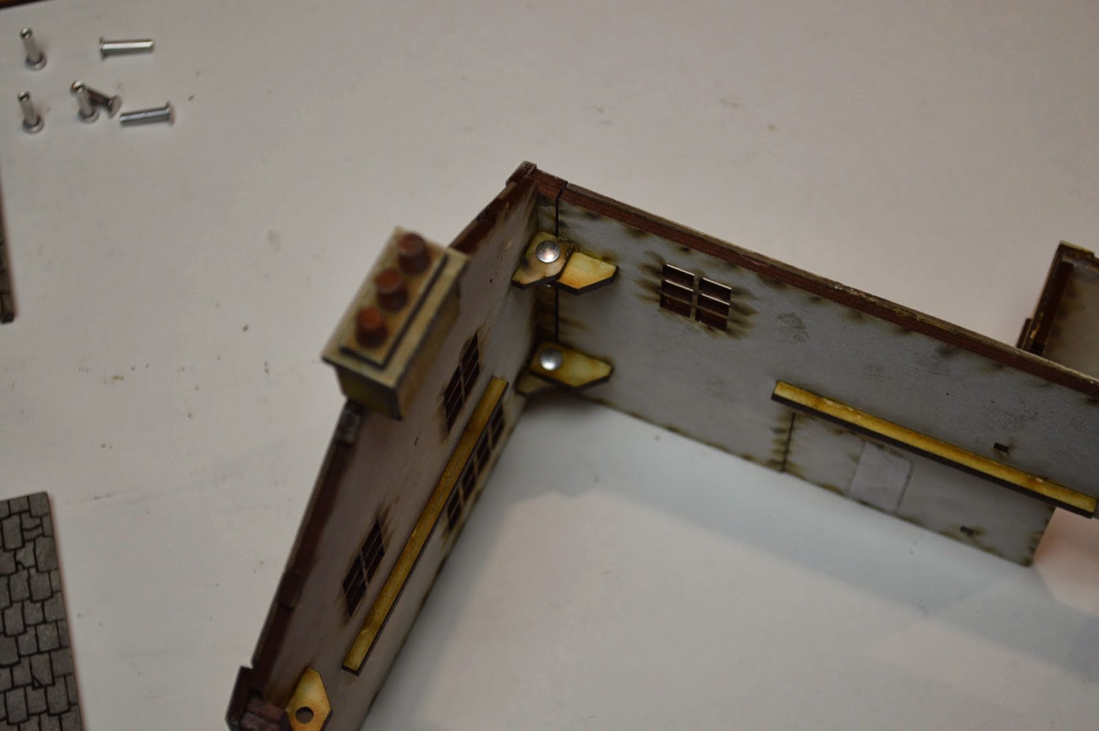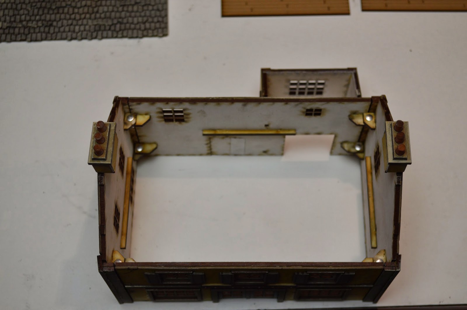 What is more amazing, is both the dynamic nature of the range, how easily it all goes together, and how it comes out of the box. I had already assembled the restaurant --- but it was a snap to disassemble and then take pictures of it being put back together ... using a unique system of pinning which you can see in the pictures below ...