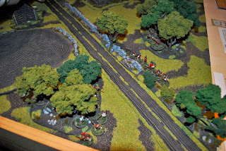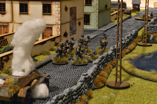 | Here you can see the cobblestone roads being used in a 28mm Bolt Action game. |
