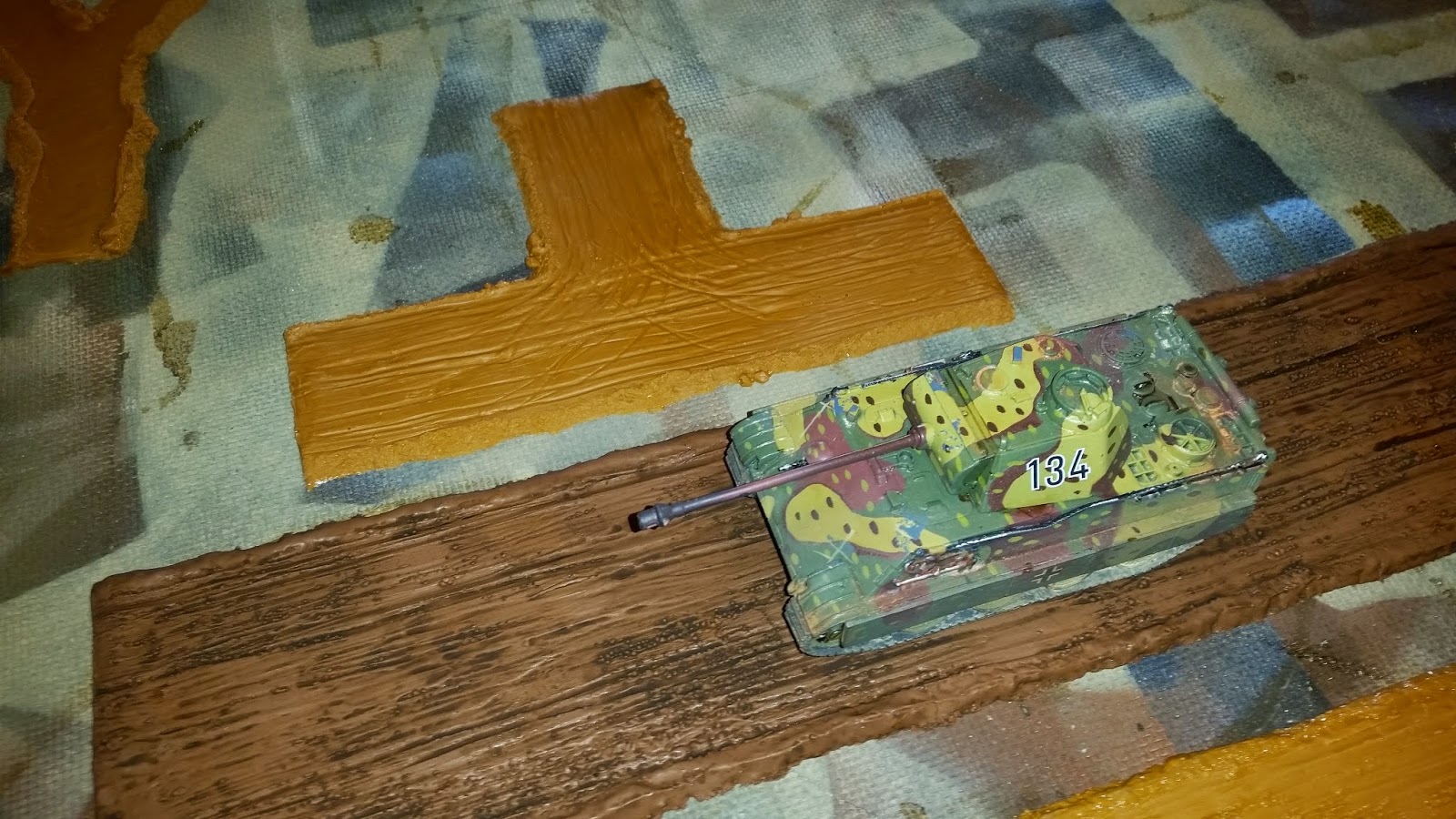 I'm particularly happy about the 3.5" plain dirt roads ... finally a dirt road that is 28mm in size ... you can see below that a 28mm Warloard Panther tank fits very well on the width of these roads. I have connector sections for going from 3.5" to 2" roads ... for each of the types (plain, tracked and cobblestone). I can't wait to get these new sections into my games.