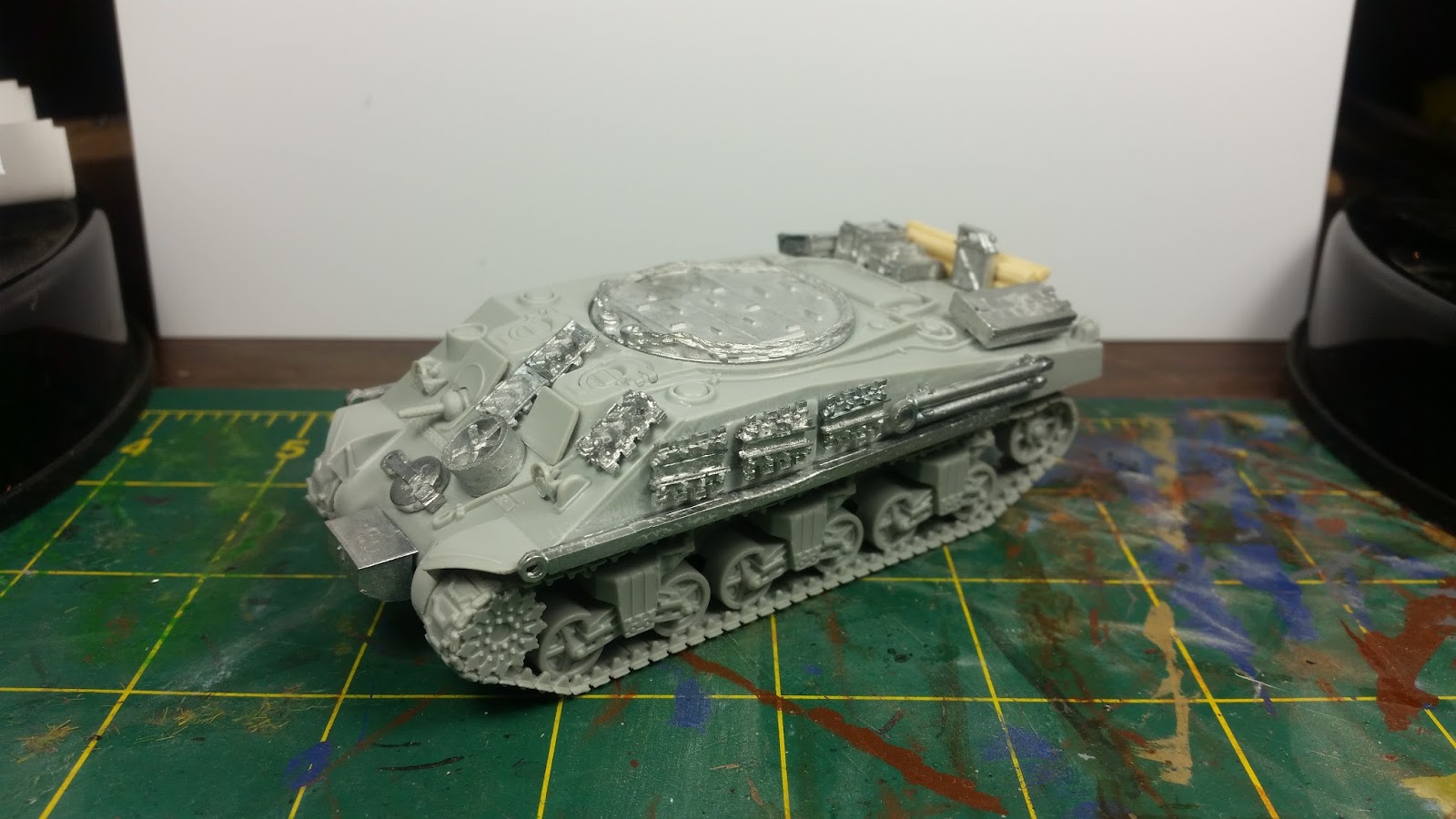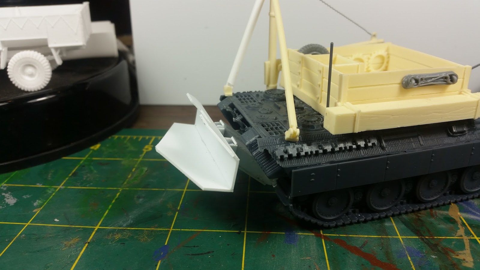 S and S Models sells a 1/56th Italeri Sherman & ARV conversion kit. This kit also includes both the conversion bits and the plastic tank from Italeri (again, same as the Warlord Games plastic kit). Build out the plastic Sherman kit except for the turret and then follow the pictures on the S and S Models site to glue the bits onto the right places. Below are pictures of my assembled Sherman ARV (waiting for painting).BergPanzer 3 ARV
