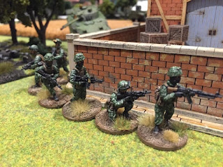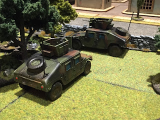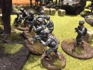 This game has been a long time in the making. Dan Kerrick form our group has been working on the US and Russian forces for a while now. This is the first of many games we'll play. We used the Bolt Action Modern rules I've written up and they worked great. The Russians pushed hard but suffered terrible dice rolling and eventually the US managed to take out enough Russian units to force a withdrawl. This was a hypothetical engagement on the French/Belgium border.