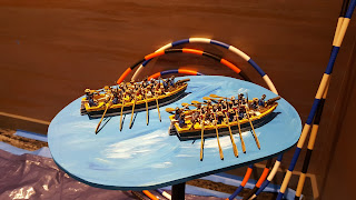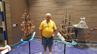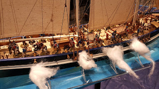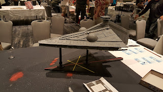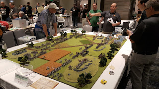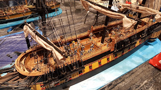 Adam Clark is a madman - in all the right ways! I've been keeping a close eye on his progress on this project and it was great to see it deployed in the convention hall. Adam bought museum ships, hacked off the bottoms, fixed up the paint, populated them with sailors, and affixed them to rolling stands. The game used the Kiss Me Hardy rules from Two Fat Lardies. Each side fielded two ships and Adam even has smaller boats that can be launched with boarding parties. There was also a stunning French fort model participating in the game.Raid on Fort William Henry