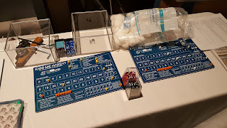 Here are a number of random pictures from throughout the weekend. There was a stunning Sci-Fi game setup that I took a couple of pictures of ... some of the first ones are from Thomas Foss who ran his 54mm wars of imaginations game using laser cut wooden figures ... you can see more of this game on Thomas's blog here.That should do for now --- recovering but motivated to get on with my projects!