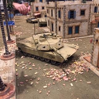 You can see all sorts of new stuff I did for this table: high tension electrical power lines, new trees/bases, paved roads, French armour, playground (needs more work), and more!