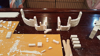 Anyways ... I first had to loose fit blocks together to get an idea of what the structure would look like.  Once that was done I made some changes and then it was time to start gluing the foundation together.  Some pictures below ...