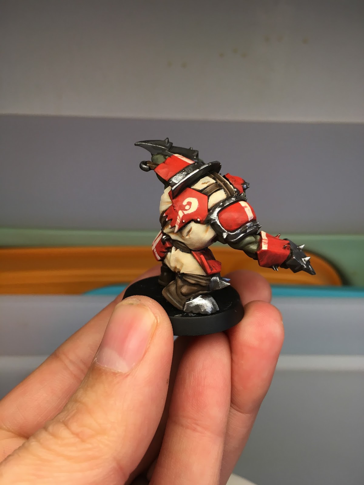Last but certainly not least ... here is a "work in progress" pic of an Orc Blitzer that is just about done (more details being added). The excellent Mark Brooks has been commissioned to paint my BB teams and he sent along these WIP pics ...