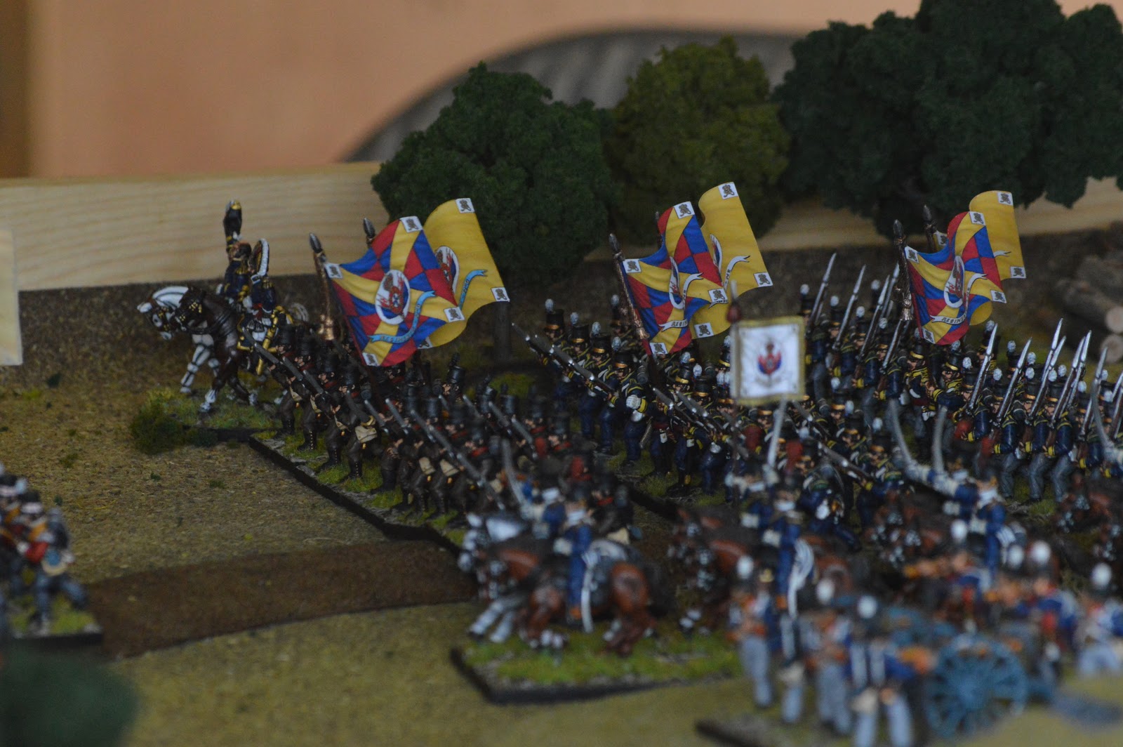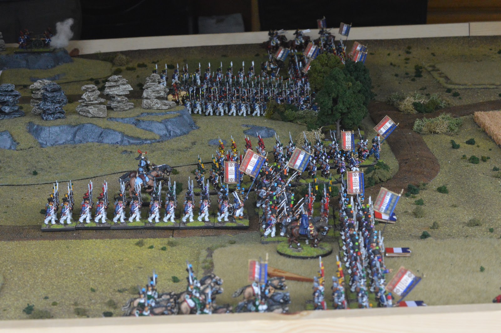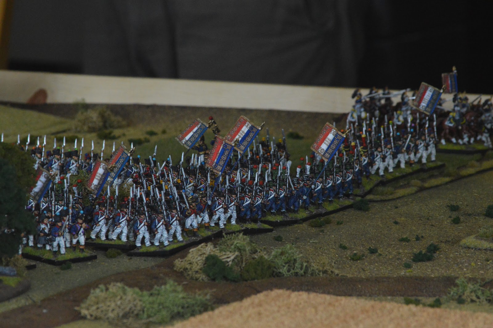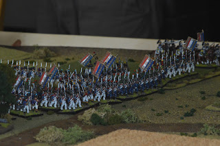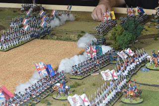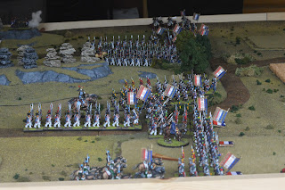 I played a slow advance to maintain a solid defensive line while Dan elected to advanced faster to try to pin the advancing French forces into the gap. As it was the French advanced quickly and managed to expand across the table faster than the British could.