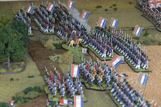 Both sides suffered a lot of casualties. The British right flank (French left) fought into what was essentially a draw. I managed to break several French units on the left flank. All my units had taken about the limit of their casualties so things where very tough and go until the very last turn. Despite my generally crappy dice rolling, the one thing I could do well was pass morale tests ... I can think of three that I should have outright failed but managed to pull off a miracle.