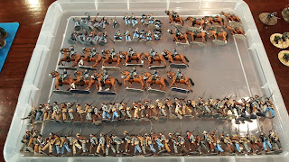 You can see I have some Berdan's Sharpeshooters in this batch ... along with a model for Col. Chamberlain ... those are for the Little Round Top scenario. In total there are three Union cavalry units (one is already based/complete - not pictured).