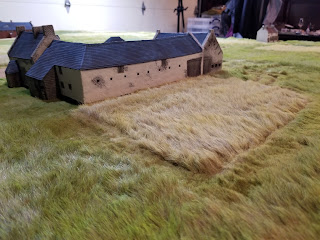 The mats arrived yesterday from the most excellent David Skibicki. I immediately ran out back and deployed them on my deck to get a picture. Then I jammed the whole dang thing in my garage! I put the buildings out to see how everything sized up. All in all it came out perfect! All I really have to do is modify the entrance road/area to Hougoumont - which will not be hard at all.