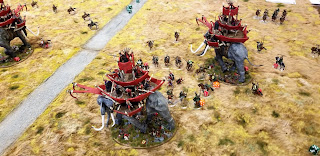 Falling: While the staircase used is only 8" at it's highest point for practical game purposes, it only abstractly represents the staircases. The "real" (right, it is a fantasy setting, har har) staircases are much higher. Any model that falls from the edge of the staircases from 5" or higher automatically becomes a casualty. From 4" and lower, models suffer falling damage as normal.