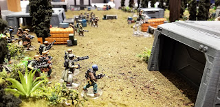 Dan Kerrick ran this SPECTACULAR game. Really, this game captured the "forest moon" really well. Both sides fought over a central bunker that housed the control room for the shield generator. The Rebel scouts pushed early and quickly gained the bunker - then dug in like ticks! The Imperial forces advanced too cautiously and didn't regain the bunker. Rebel win.