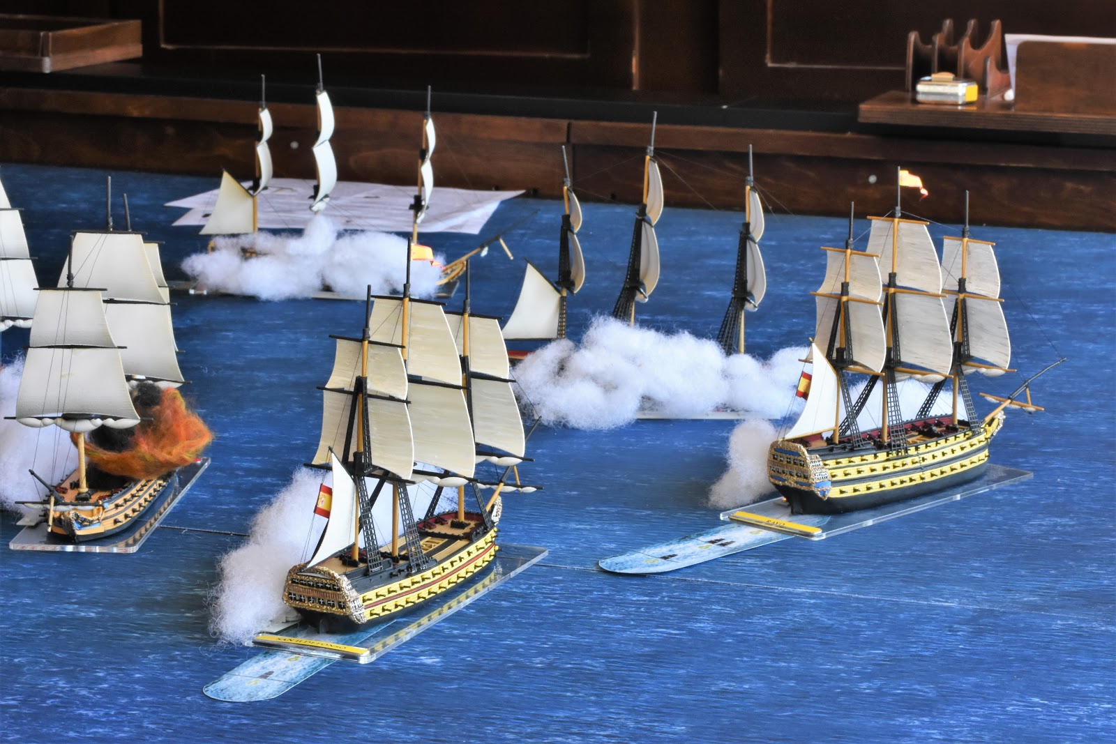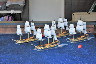 We had a great time playing through the rules that worked out very well. Both sides suffered heavy losses across 3 of the 4 ships ... and we had raking, broadsides, and all sorts of different rules aspects taking effect throughout the game.
