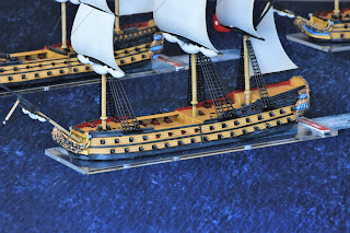 Two groups of pictures - the first using my SLR camera, the second using my phone. Roy Scaife has the British fleet and is actively working through rigging. I'm doing the French and Spanish fleets myself. We've both been working away on the ships. The game at KublaCon will have 38 ships total on the table.