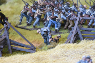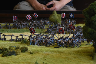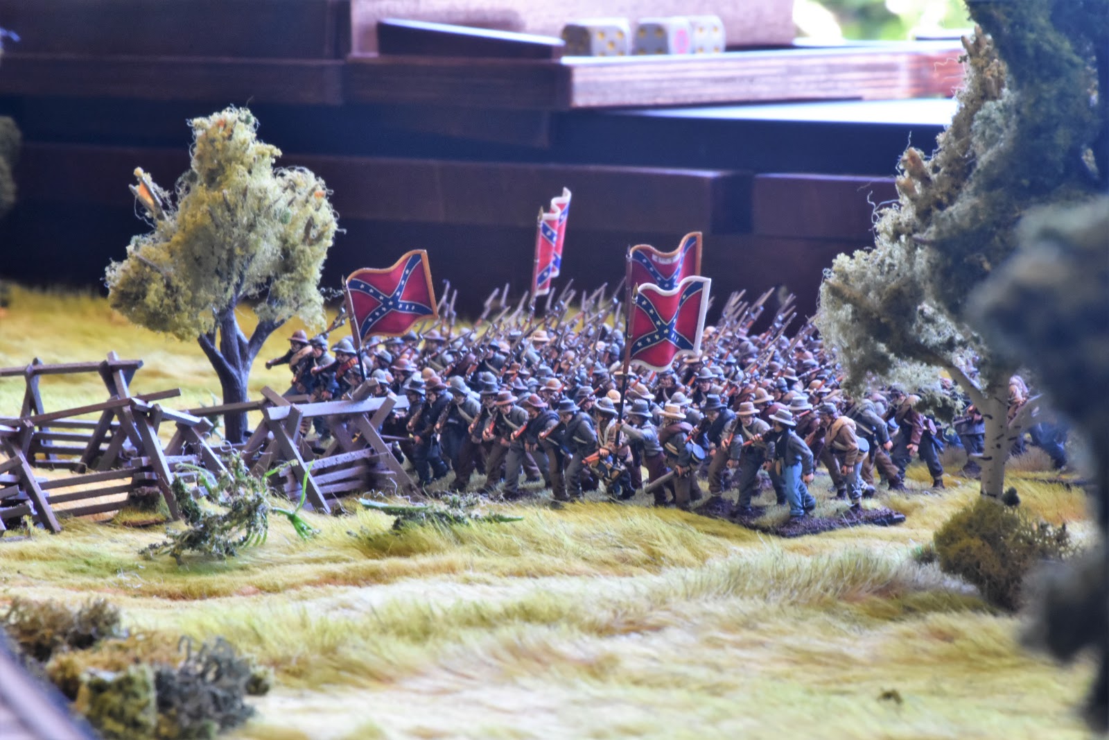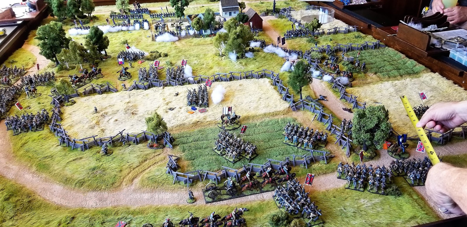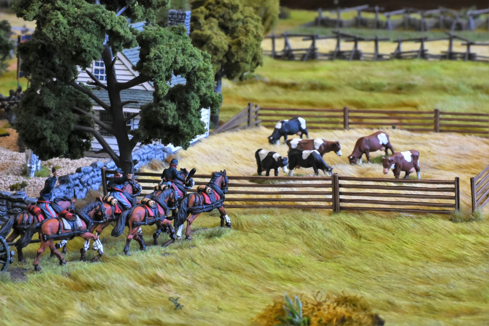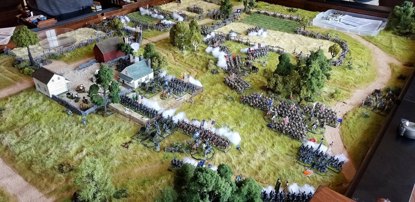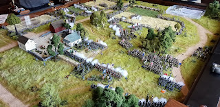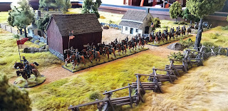 The scenario was an advanced Union force was moving into position - led by a small cavalry brigade - to secure a key farm near a crossroads. A large Confederate force arrives to force the Union position back before reinforcements can arrive.