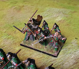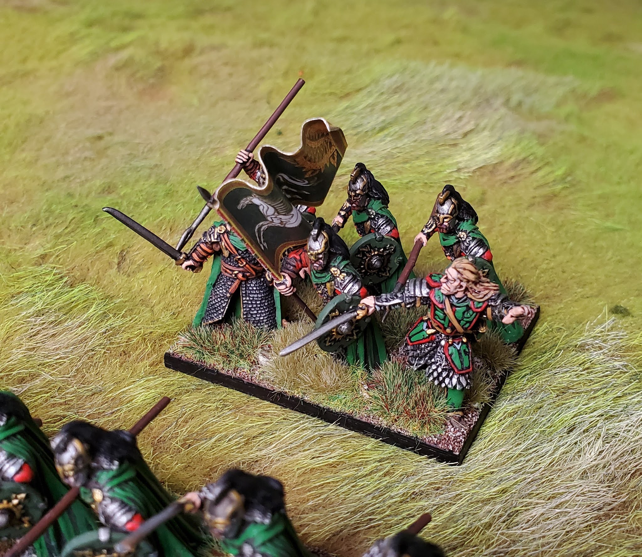 I was able to get 2 units of Rohan bowmen done and the dismounted Rohan Royal Guard with command stands for Théodred and Théoden.