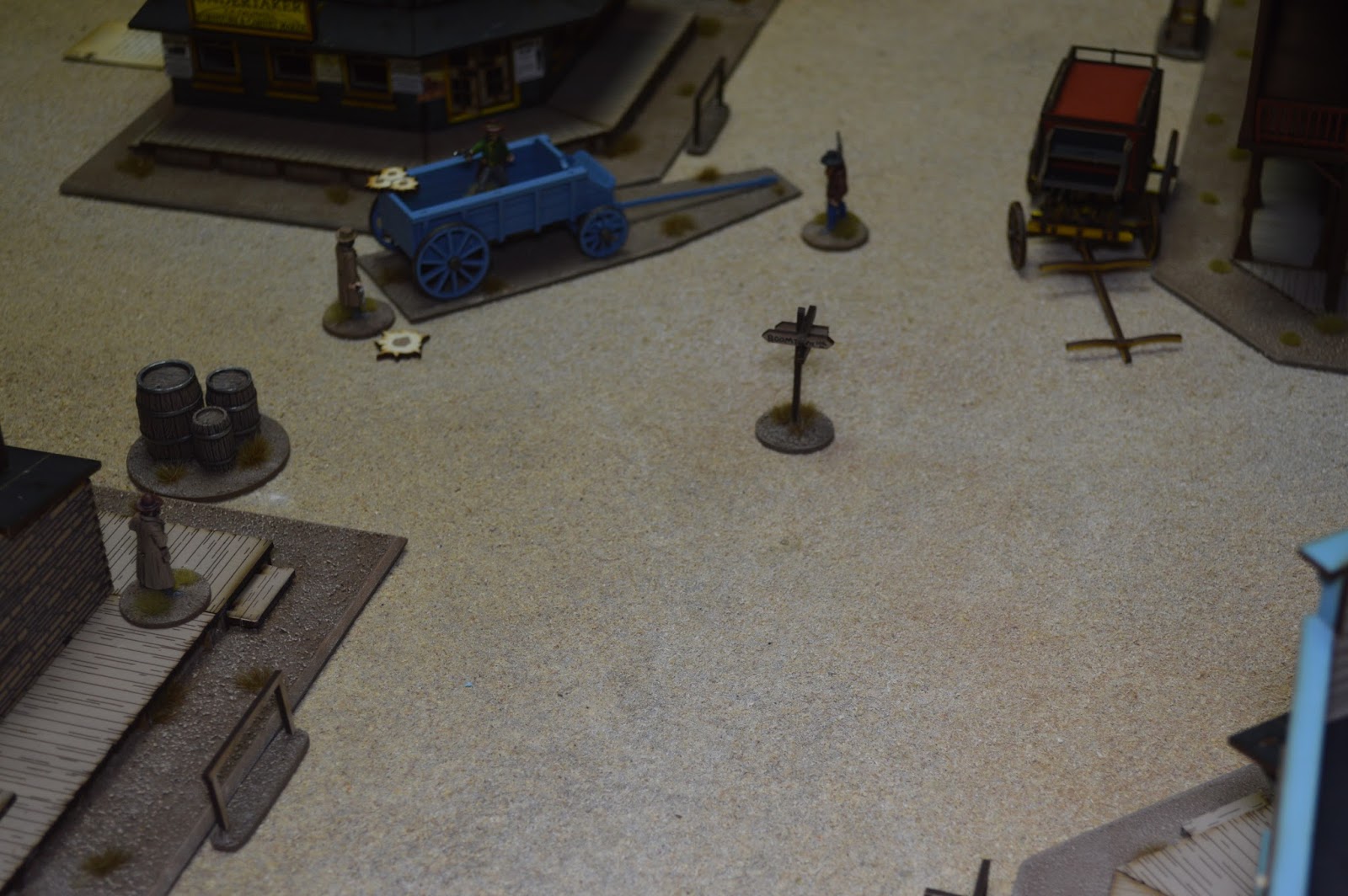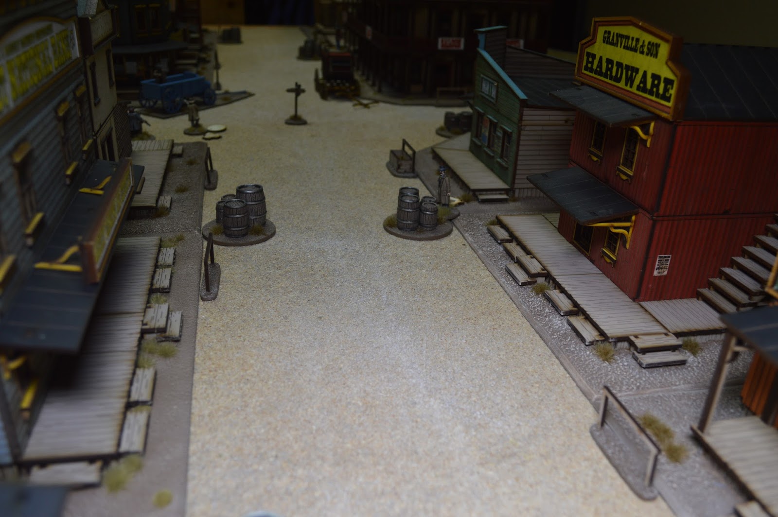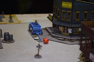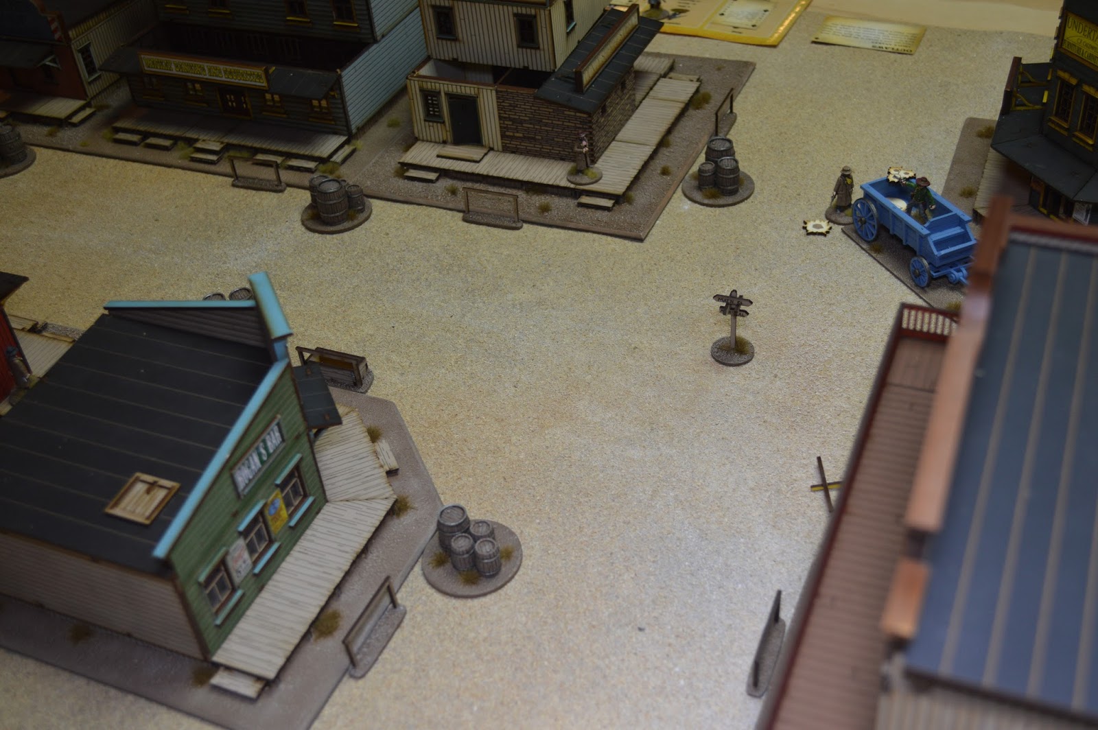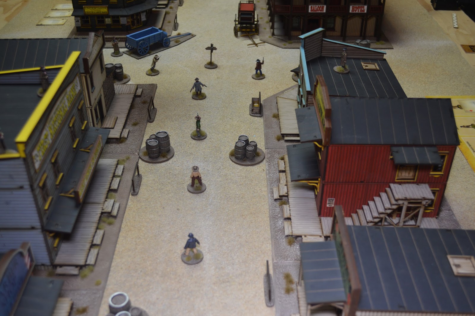 I always forget how much fun it is to play Dead Man's Hand.  We don't pull it out nearly enough to play and that is something I will be fixing in the near future.  I also still have the remaining gangs to paint (civilians and casualties as well).  Anywho ... on to the game.