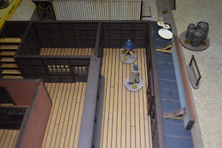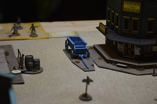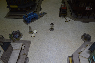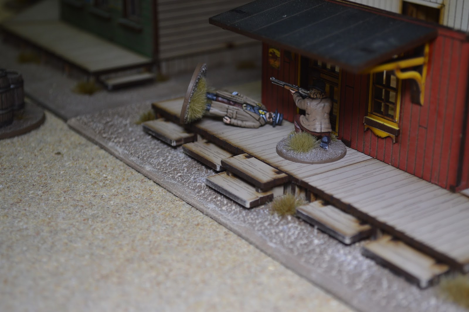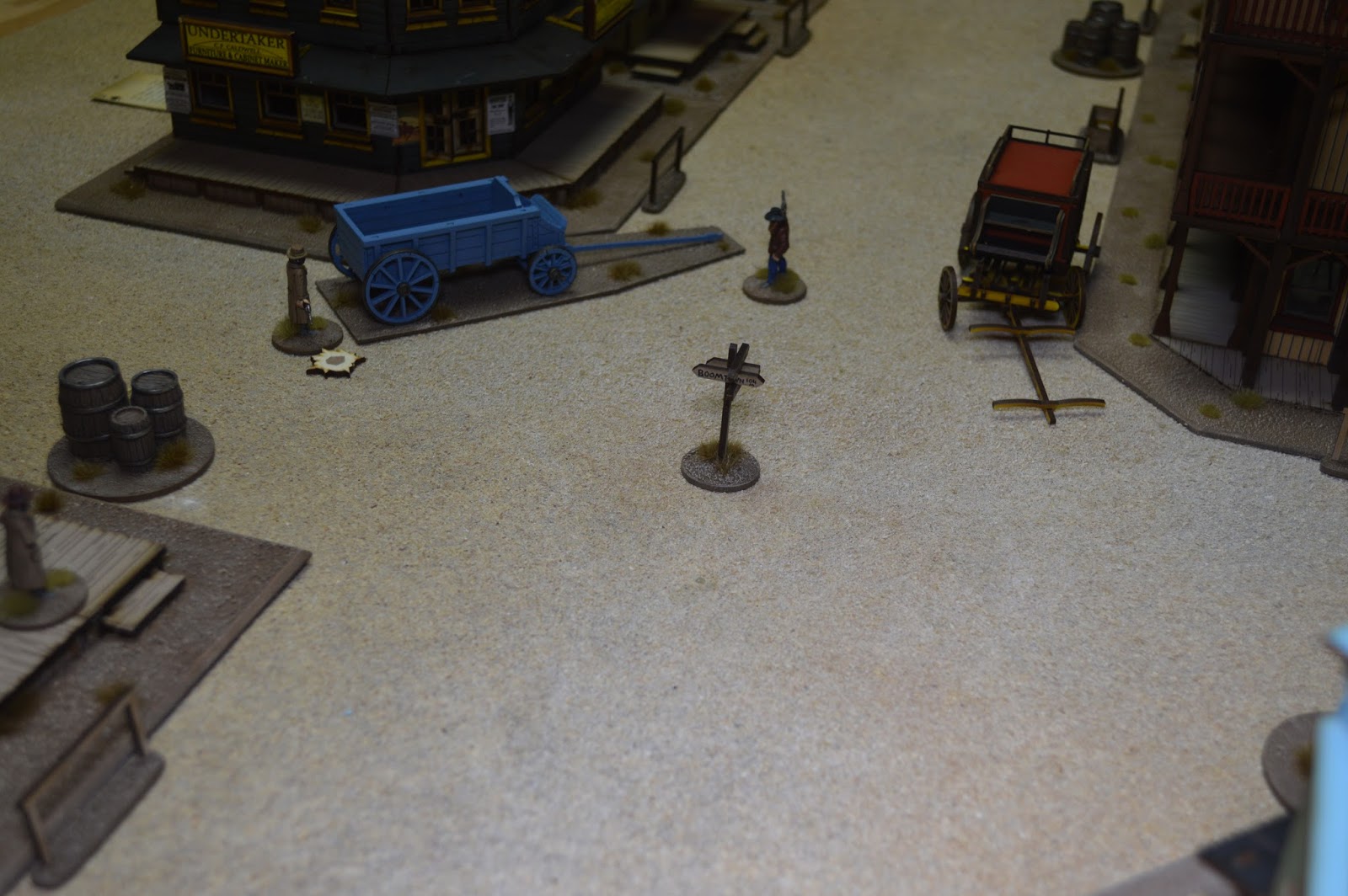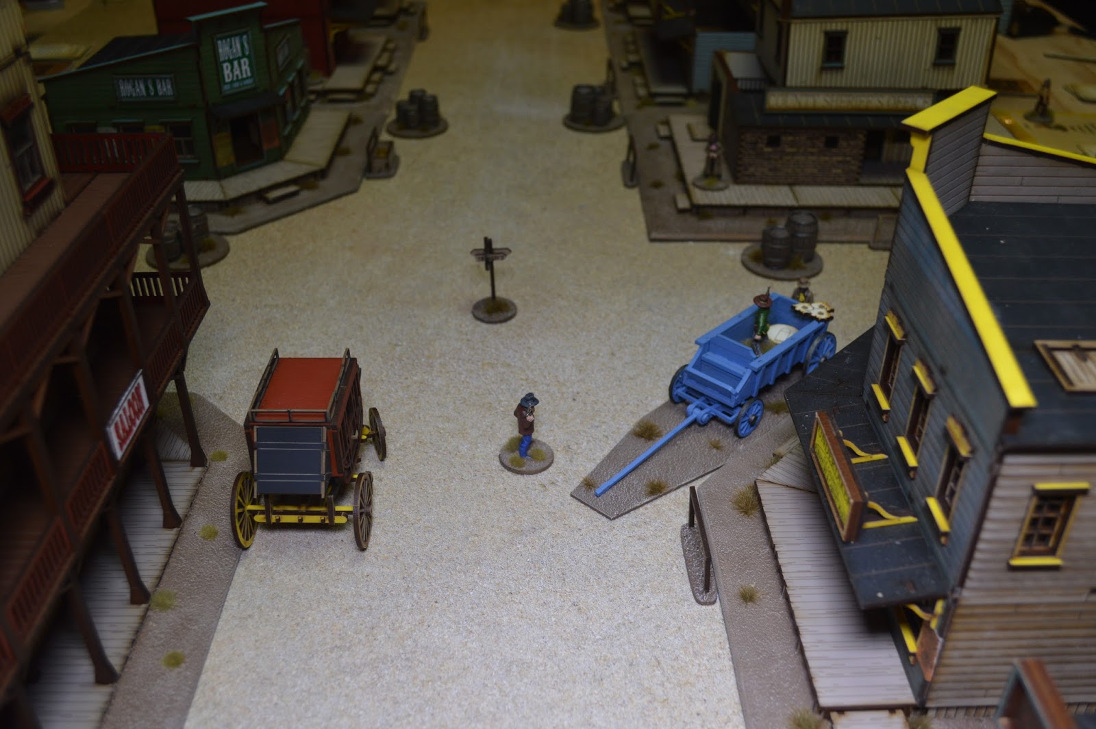 I always forget how much fun it is to play Dead Man's Hand.  We don't pull it out nearly enough to play and that is something I will be fixing in the near future.  I also still have the remaining gangs to paint (civilians and casualties as well).  Anywho ... on to the game.