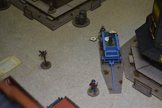 Scene two was Like Blood Across The Sky.  The early morning events have roused the rest of the gangs and they are not happy about what happened.  I was able to draw an extra card into my hand for winning the first scene.  This scene ended when either side lost two figures.  We used our full gangs but without the leaders (so six figures a side).  I was able to pull the victory off here as well ... but just barely!