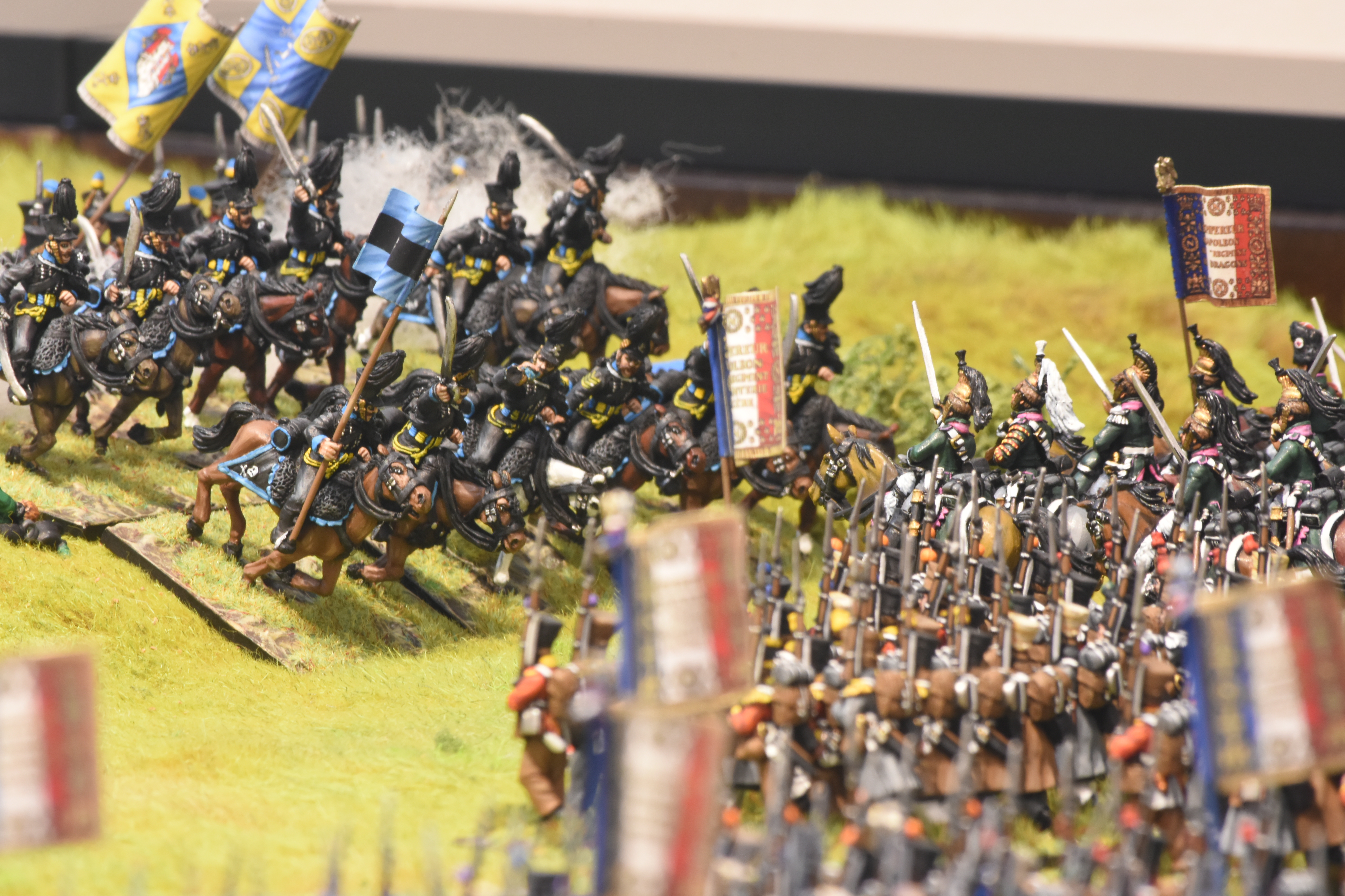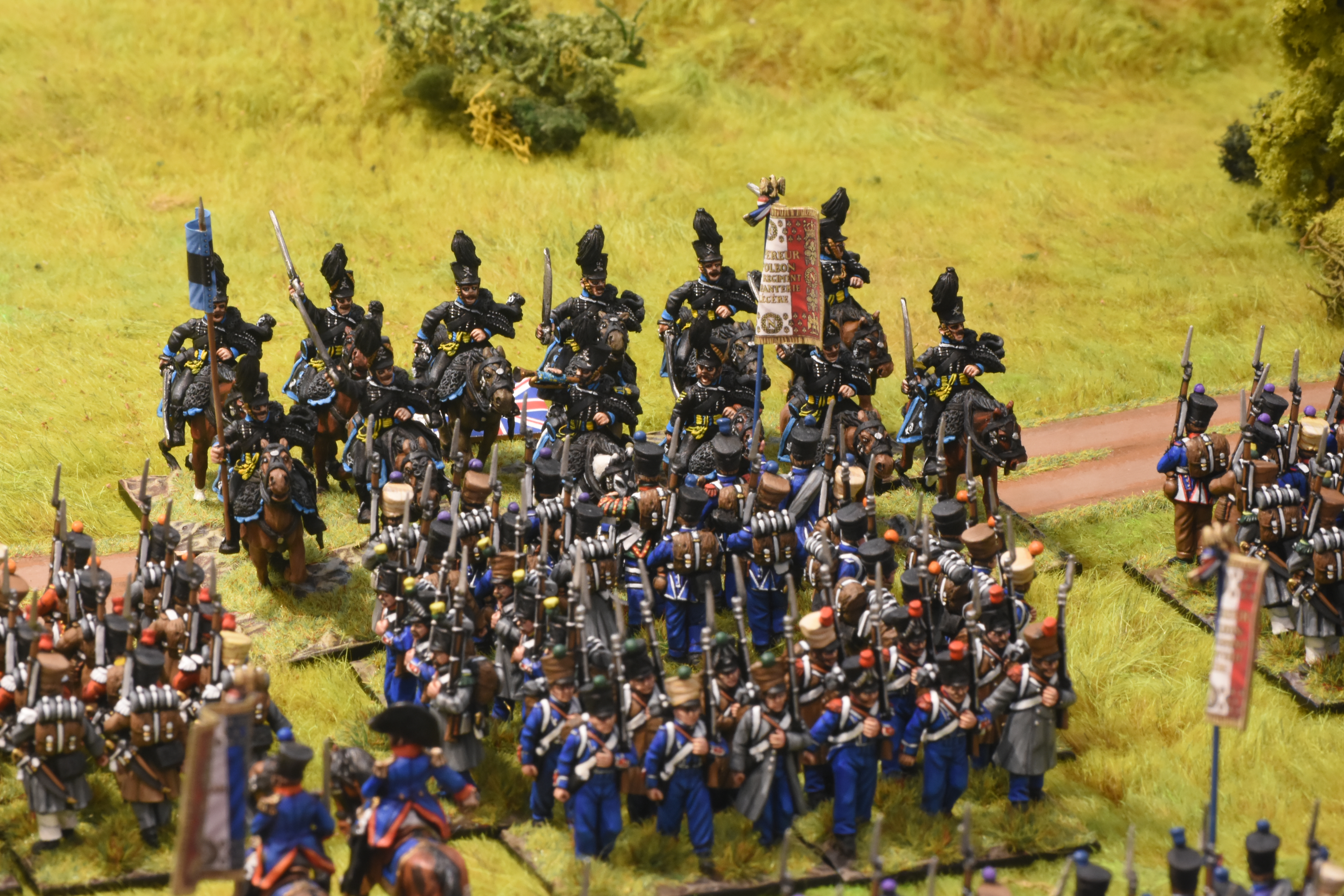 Both the Brunswick and Dutch-Belgian commanders decided to hold their ground. But, this left little room to back up as the French closed ranks with them. The Dutch-Belgian formation got overrun, but significantly delayed the French on that half of the table. Unfortunately, once destroyed, there was nothing to stop the French advanced on the British position. Some of the Brunswick units made it back to the British line, but many did not. Eventually the British/Allied army broke.