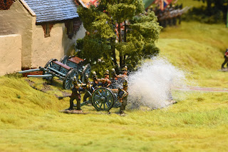 The British and Allies earned additional victory points (and command points) for each turn they had at least a single non-broken formation in the "middle" 3rd of the table. Final victory points was 46 for the French to 38 for the British and Allies. Minor victory for the French.