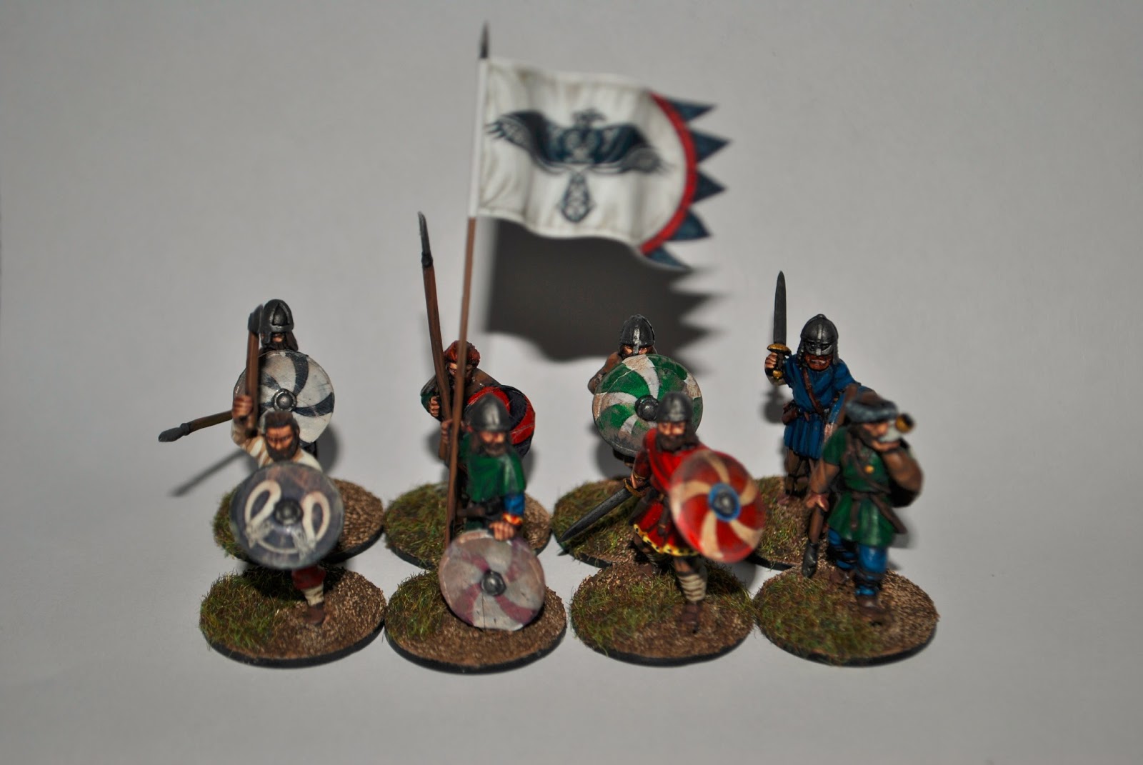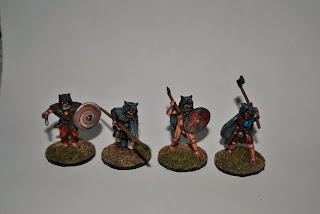 I'm hoping to get some games of SAGA in over the next couple of months (along with more Muskets and Tomahawks). I really like both SAGA and Muskets and Tomahawks - in fact I just bought a Breton warband starter army box the other day. I have a 6pt Anglo-Saxon army that is in need of painting as well. But for now, I have my 6pt Viking warband done and ready for action (special thanks to Artmaster Studio). Pictures below. I've tried a little bit different method of taking the pictures. I used a sheet of paper from my printer and stuck with the flash from my camera ... clearly my photography skills need more improvement :-)