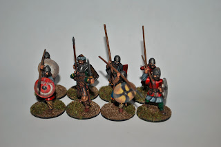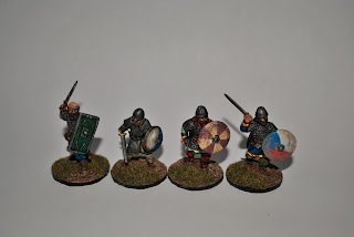 After posting my last SAGA battle report I was asked to host some pictures of my friend Roy Scaife's Anglo-Danish 4pt warband. It consists of a Warlord, two units of Hearthguard, and two units of Warriors. The warband was painted by John Comiskey (who has his own warbands for SAGA - Jomsvikings and Scots). Pictures below.