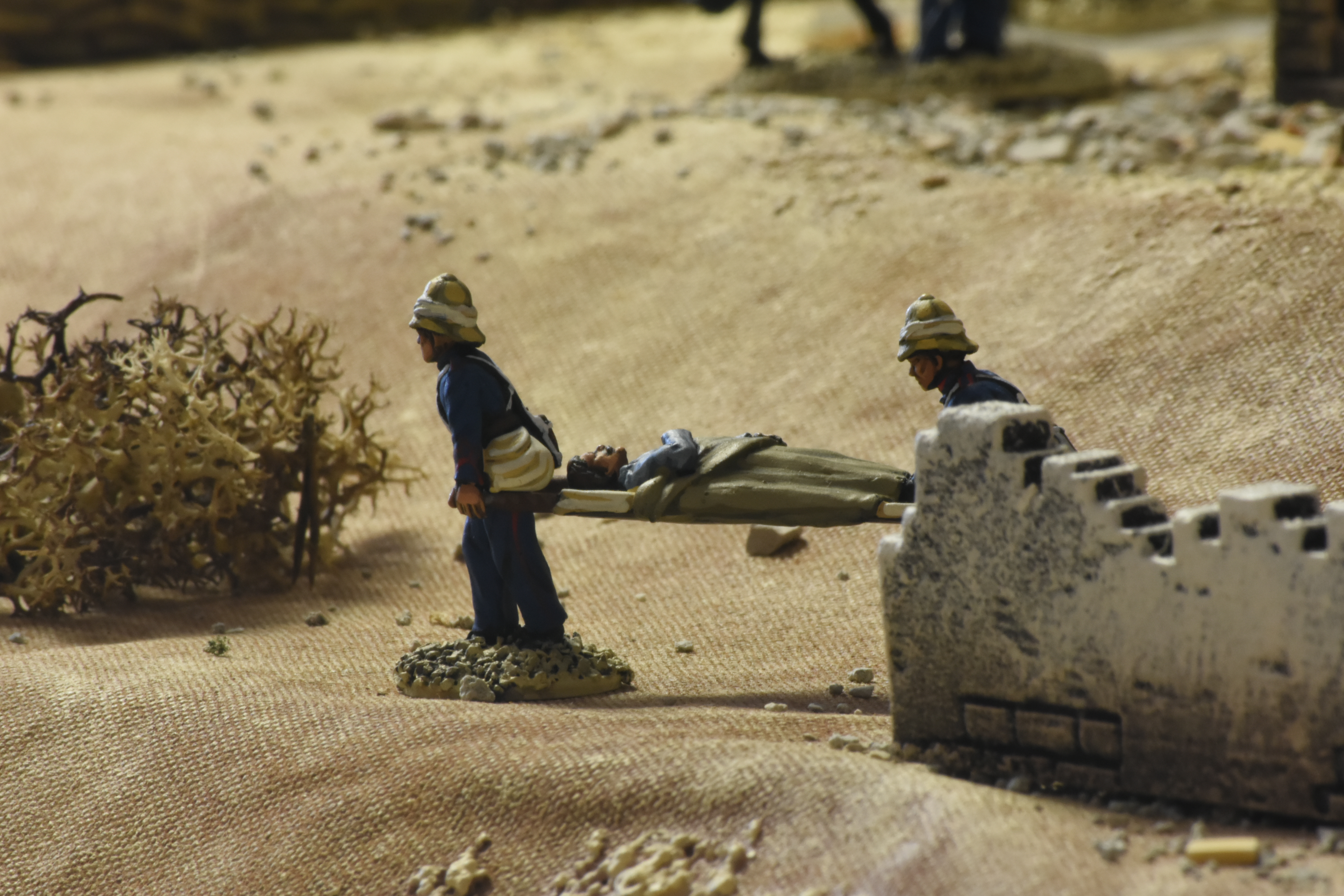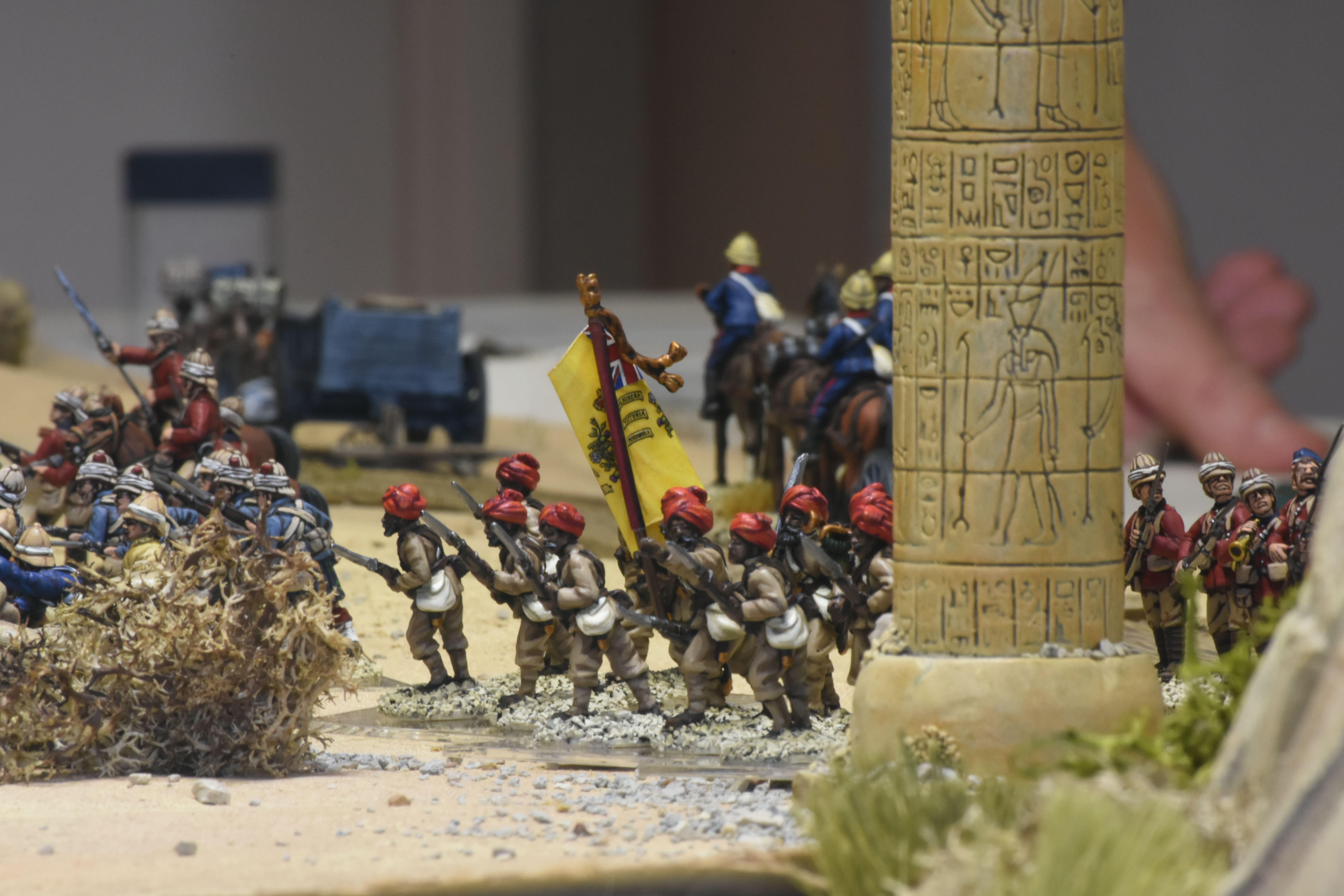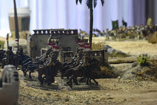 Matt Hilzendrager hosted his "The Lion and the Prophet" game covering colonial Sudan. This used the "Men Who Would Be Kings" rules with some minor modifications.  The British center broke but the British left and right flanks held on to the end.