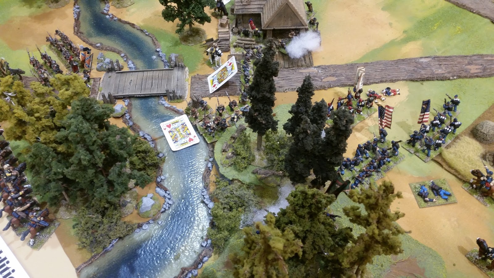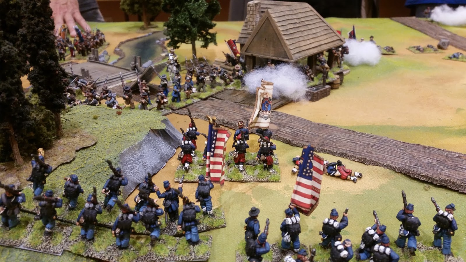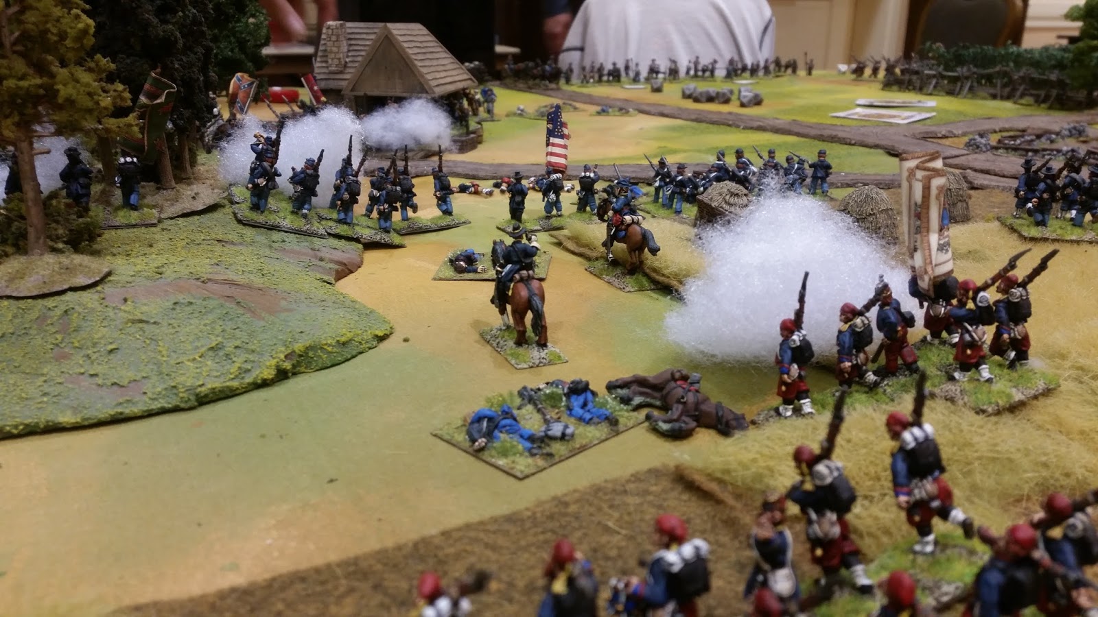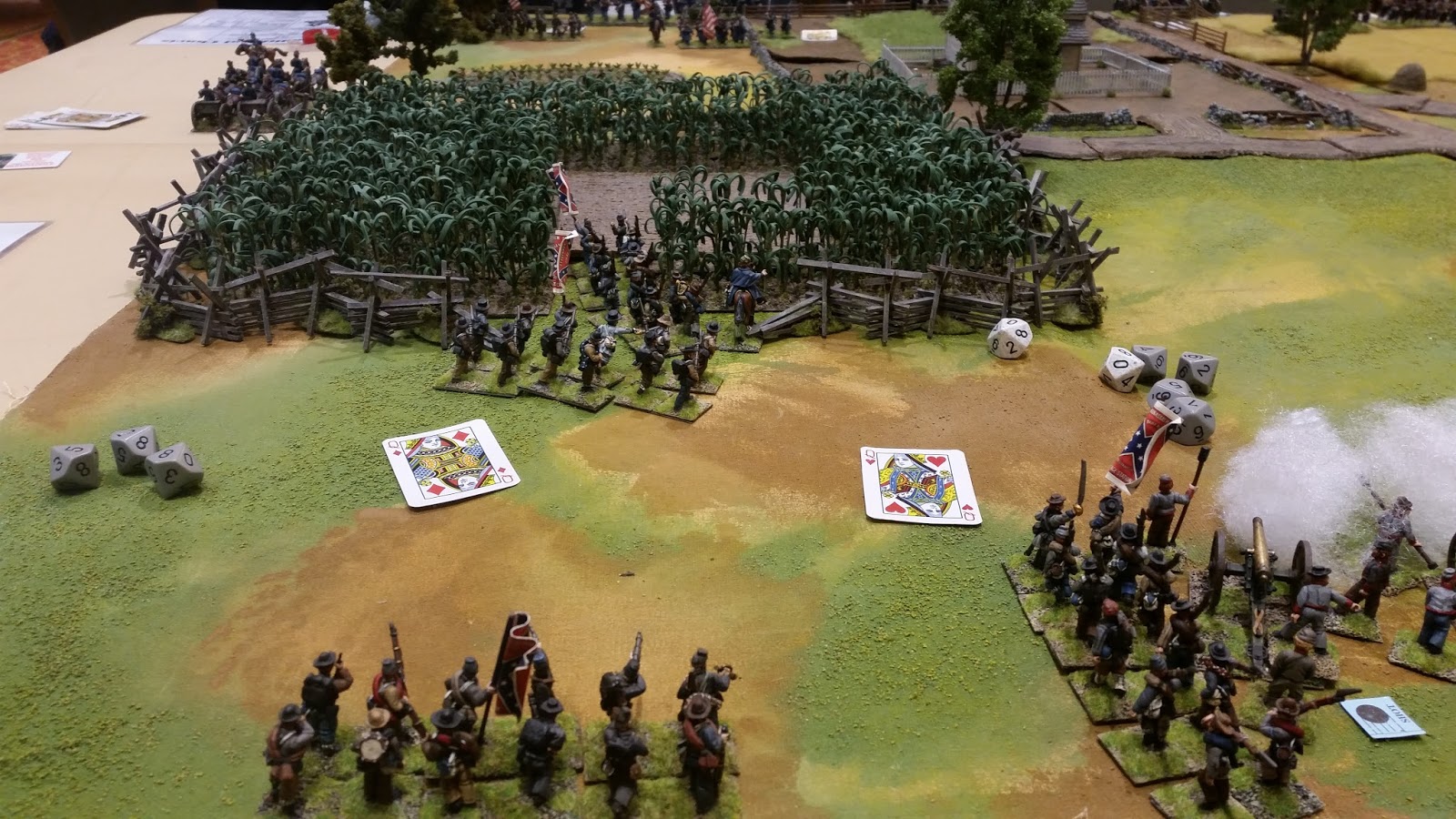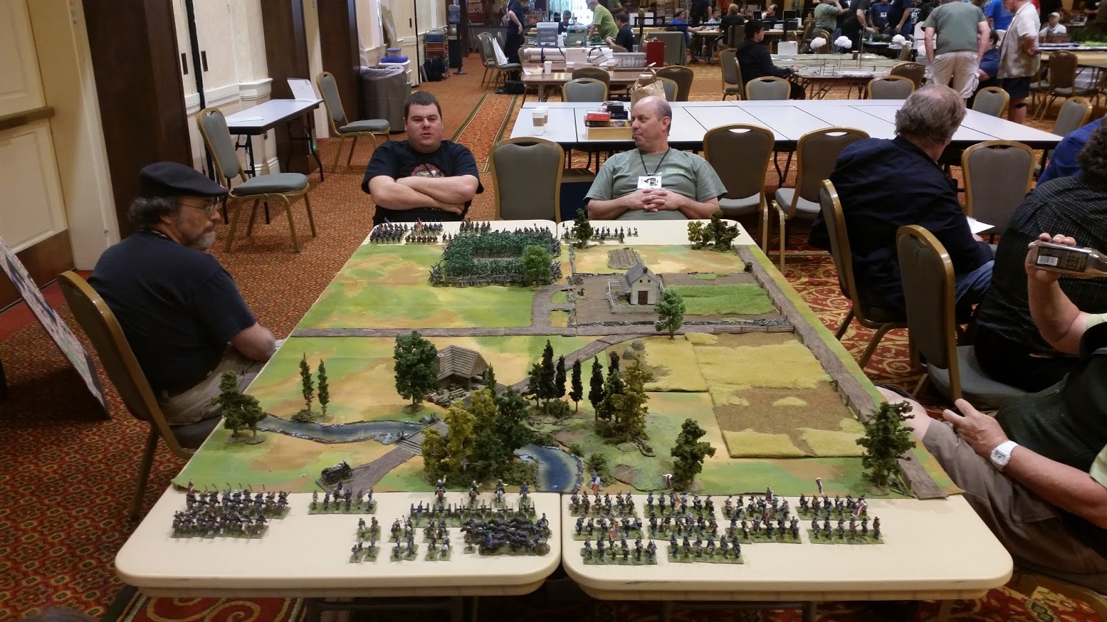 Next up on Sunday was Matt Hilzendrager's ACW game "The Battle of Miller's Farm" using his beautiful terrain and models. Matt's games are a staple of local convention miniature game quality. His setups are what inspired me to take my wargames to the next level. Matt used the "Brother Against Brother" rules for the game.