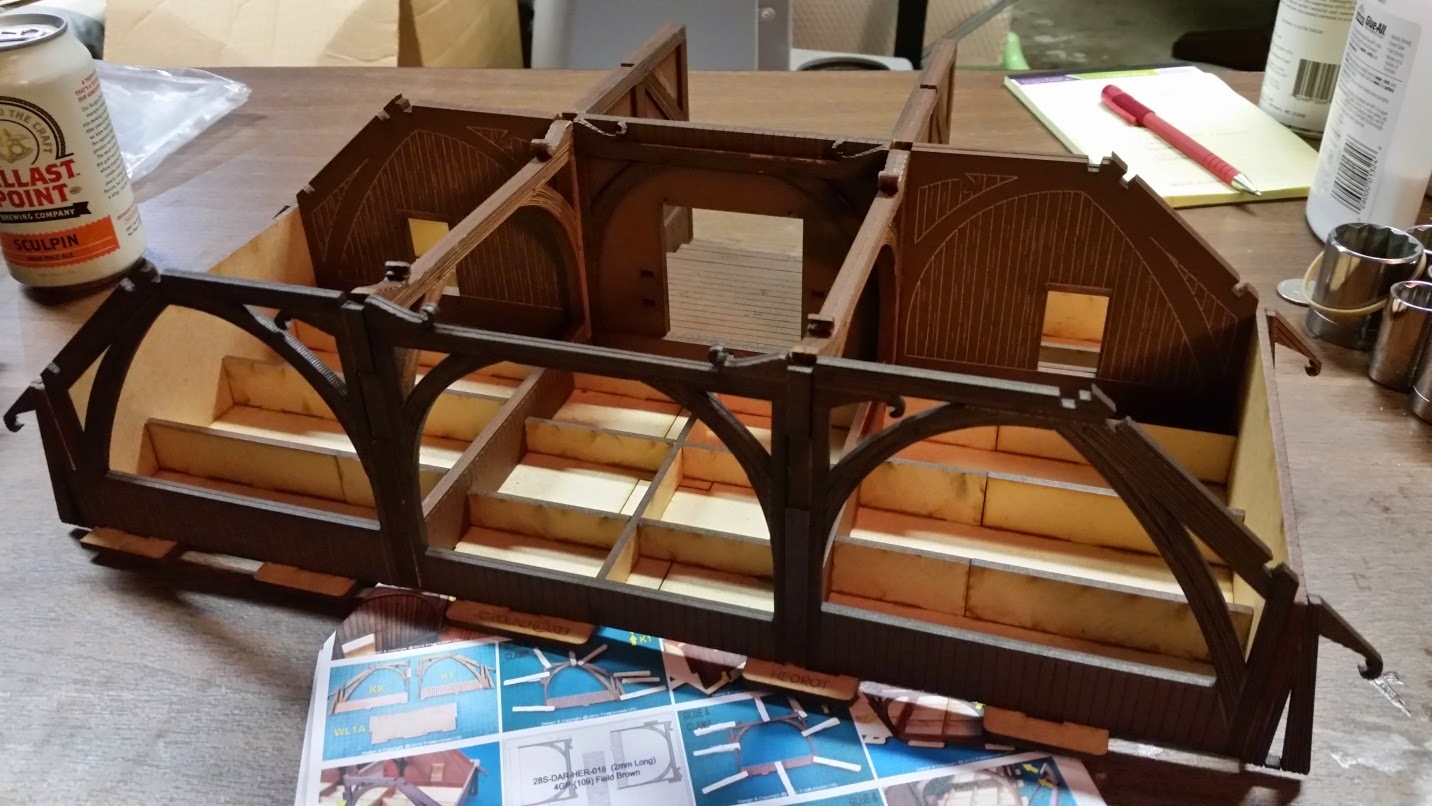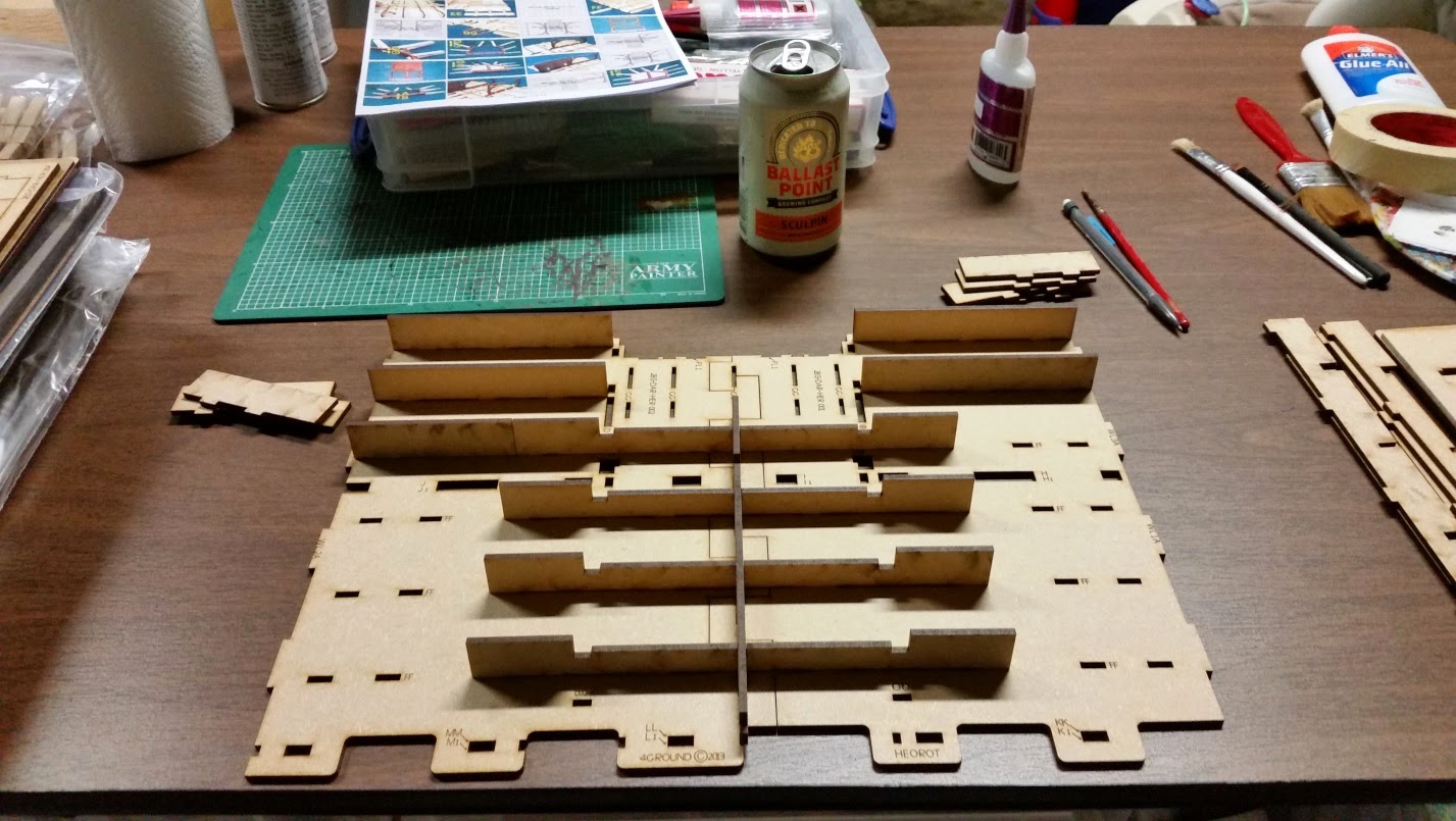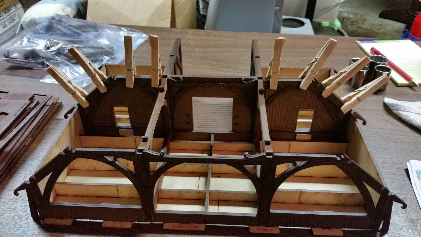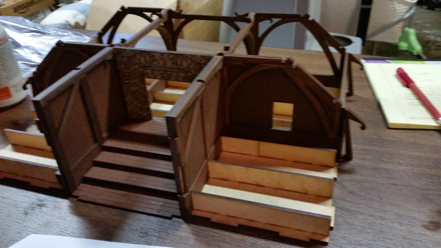 I decided to put the Great Hall on a base for additional effect. For storage purposes, I made sure the bases (front and back) were not larger than my storage bins. Notice the fascia is missing on the right side. It turns out the sprue was missing from the kit and 4Ground quickly sent one out via mail.