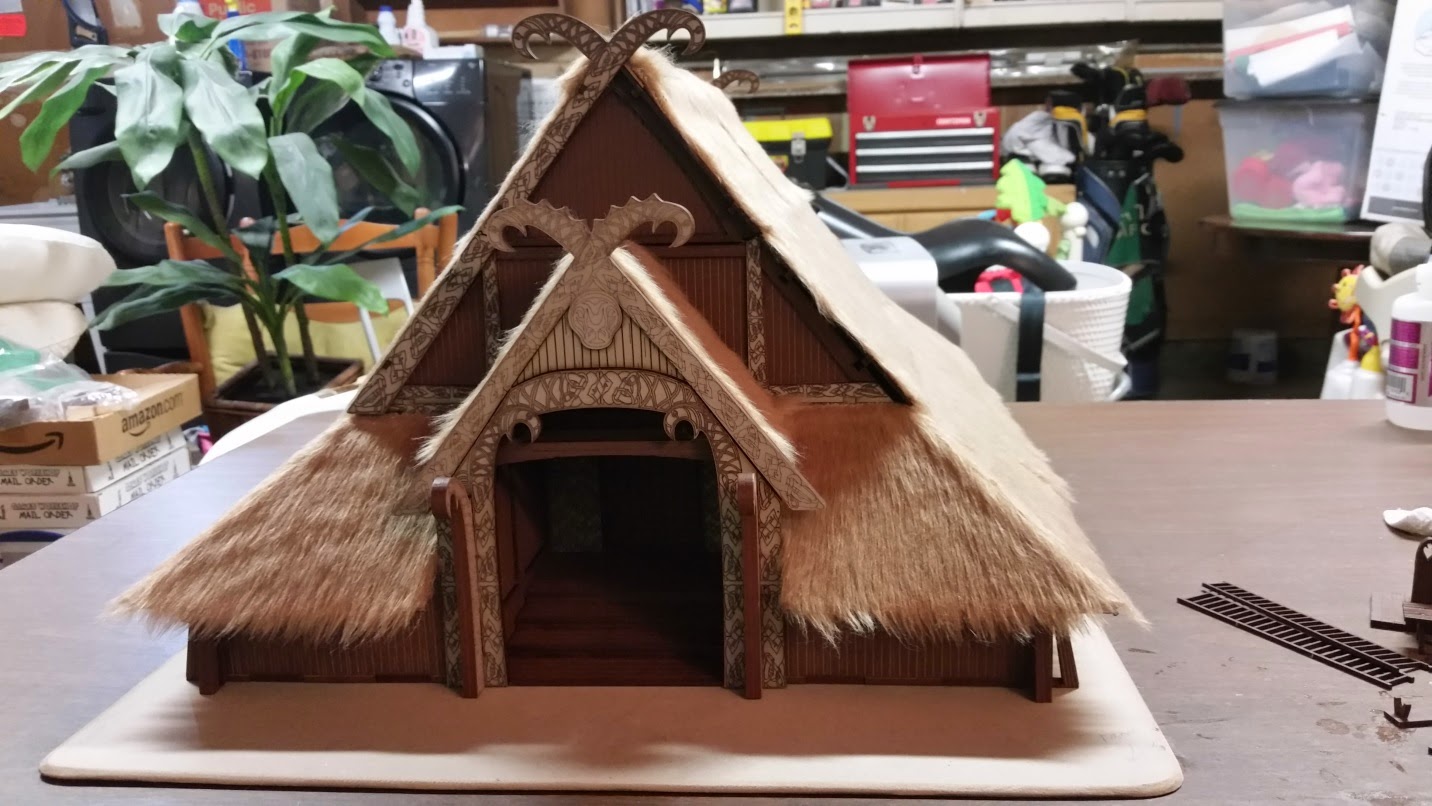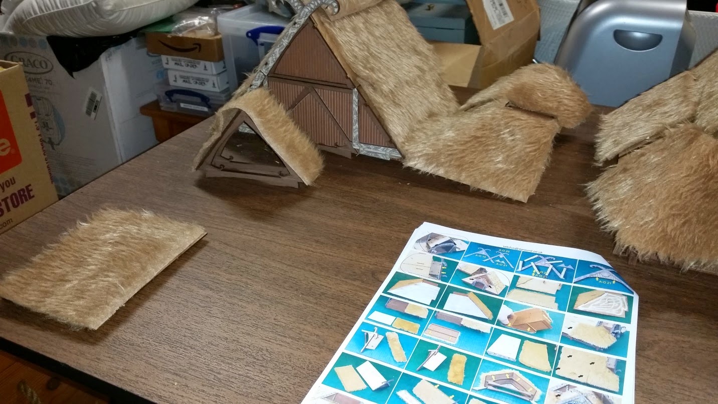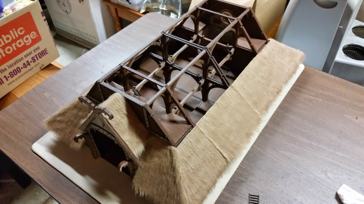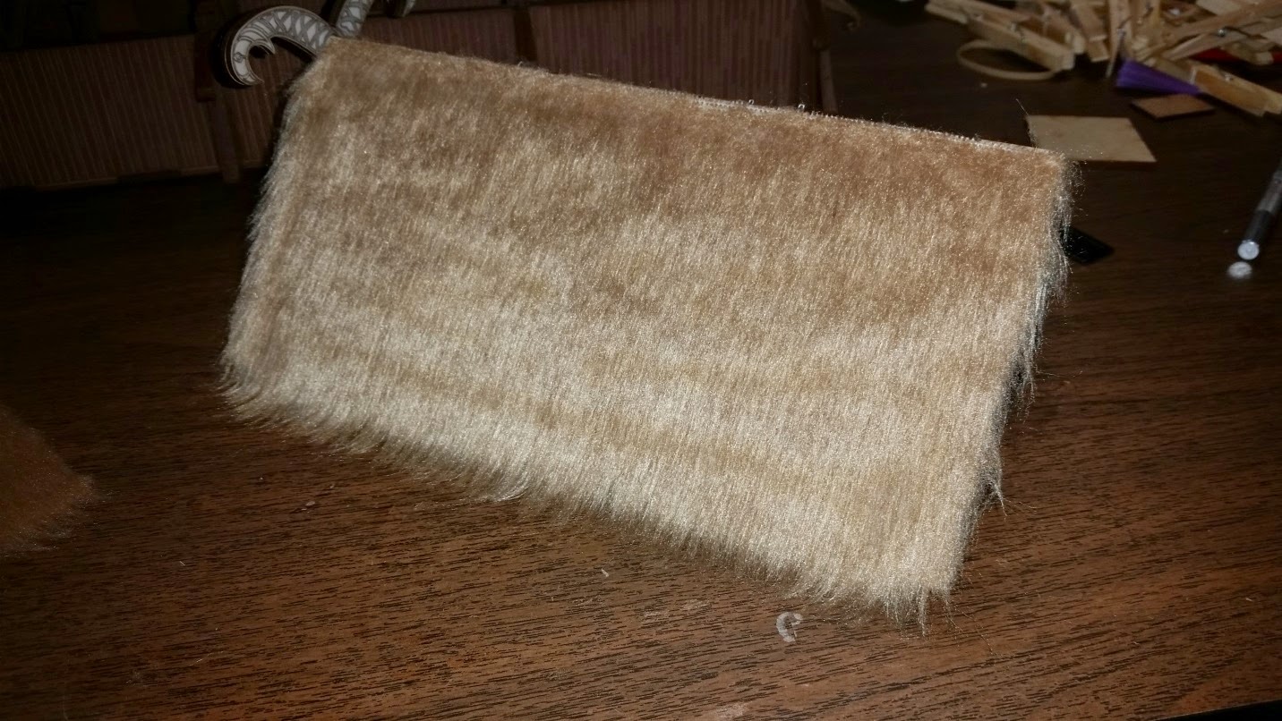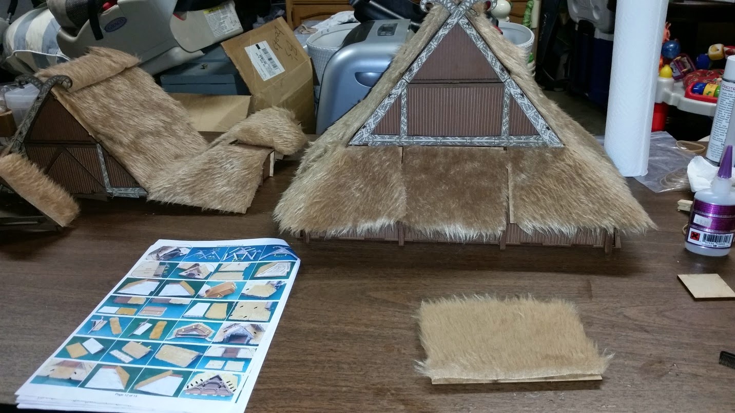 Finally, the fur is glued on the roof parts and assembly is complete. Now, you have a choice of leaving the fur as it is, or gluing and painting it. I decided to trim it and glue it. Though I may paint it later.