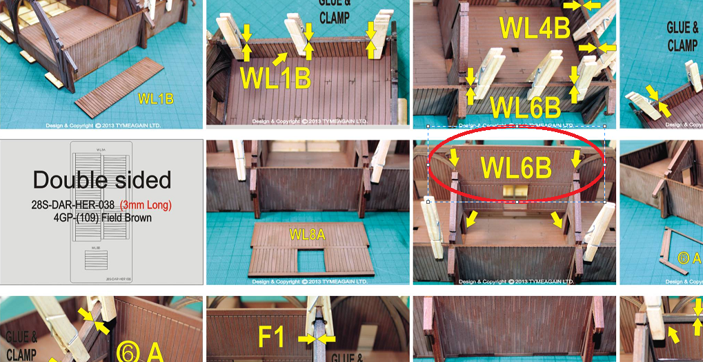 - The pictures in the instructions will frequently be turned 90 or 180 degrees from the previous picture of the same item. Double and triple check the pieces and layout/assembly before gluing.