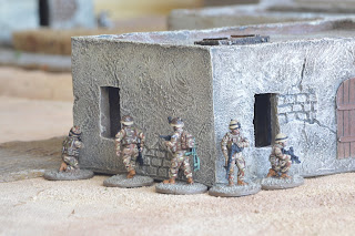 Allied Air Support: The British may call for air support up to two times during the game. Calling air support does not follow the normal rules. Instead, to call air support, any British vehicle with a main gun can fire a "purple smoke" round at a designated point on the table (a building cannot be targeted). Roll "to-hit" with no modifiers, hitting on a 3+. If you miss, scatter the round D6" in a random direction. Mark the location using a purple smoke marker (you can make your own, see my recent blog post on making them here). Resolving the air strike is determined based on if the location of the purple smoke marker is within the first 10 feet of the British side of the table or the last 10 feet of the table. If it is in the first 10 feet, resolve the air strike at the start of the next British activation. If it is in the last 10 feet, add a different coloured dice to the activation pool for the next turn. When that dice is pulled resolve the air strike before pulling another activation dice. This is meant to represent that the further the allies moved the longer it took for air support to show up (if it showed up) - whereas sir support was readily on hand during the initial advance.